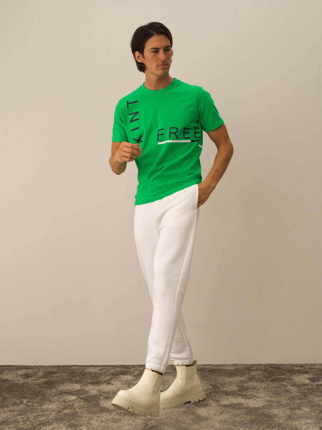 Yeşil Pamuk Dokulu Regular Fit Tişört