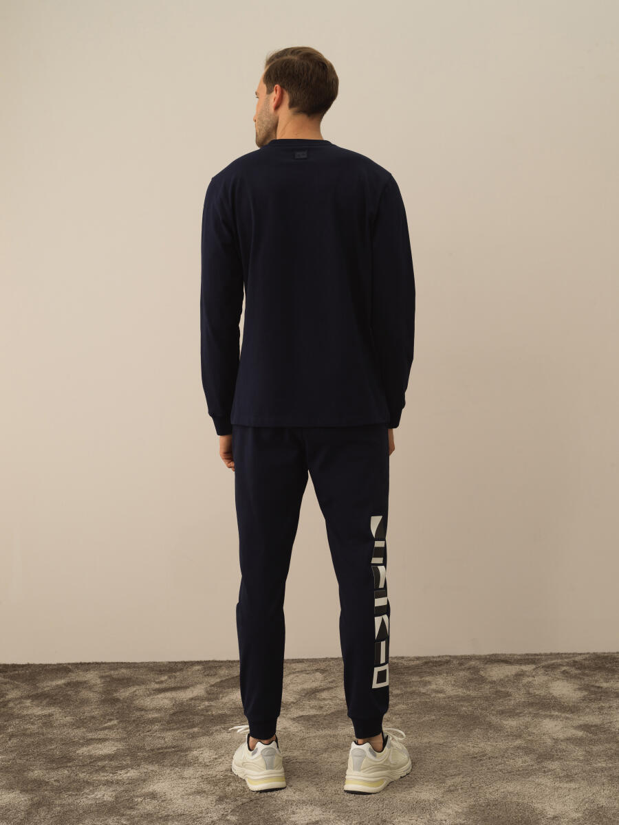 Navy Blue Modal Textured Slim Fit Long Sleeve T-Shirt - Xint