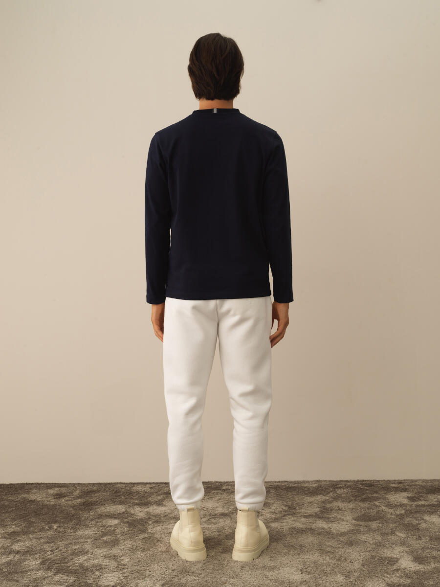 White Modal Textured Slim Fit Long Sleeve T-Shirt