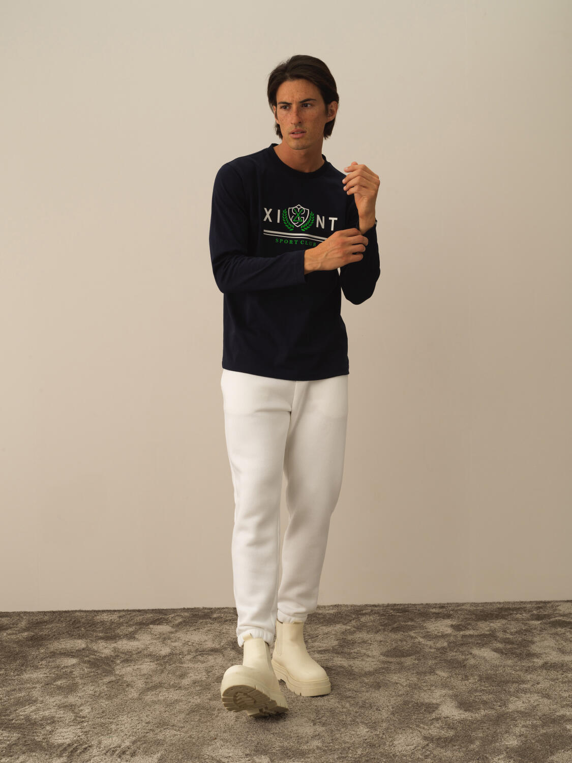 White Modal Textured Slim Fit Long Sleeve T-Shirt - Xint