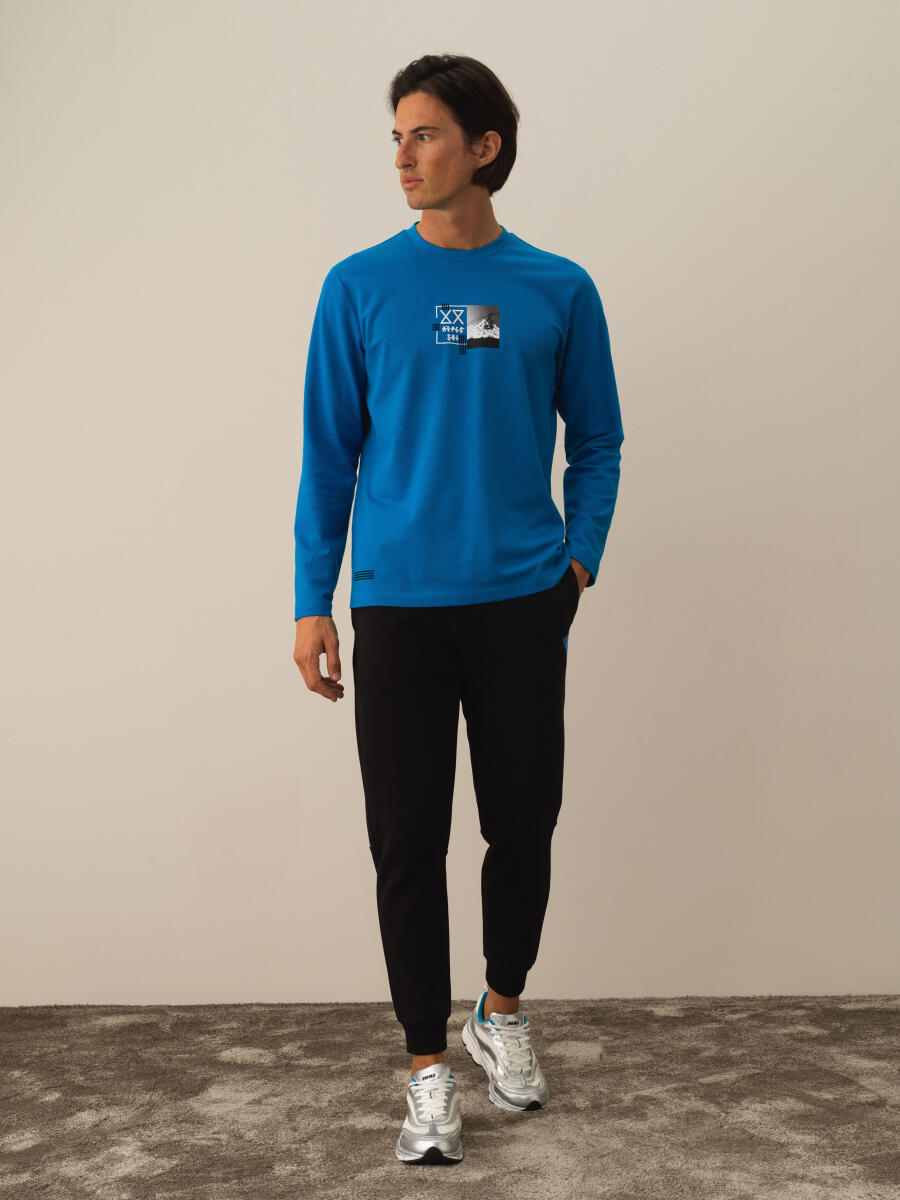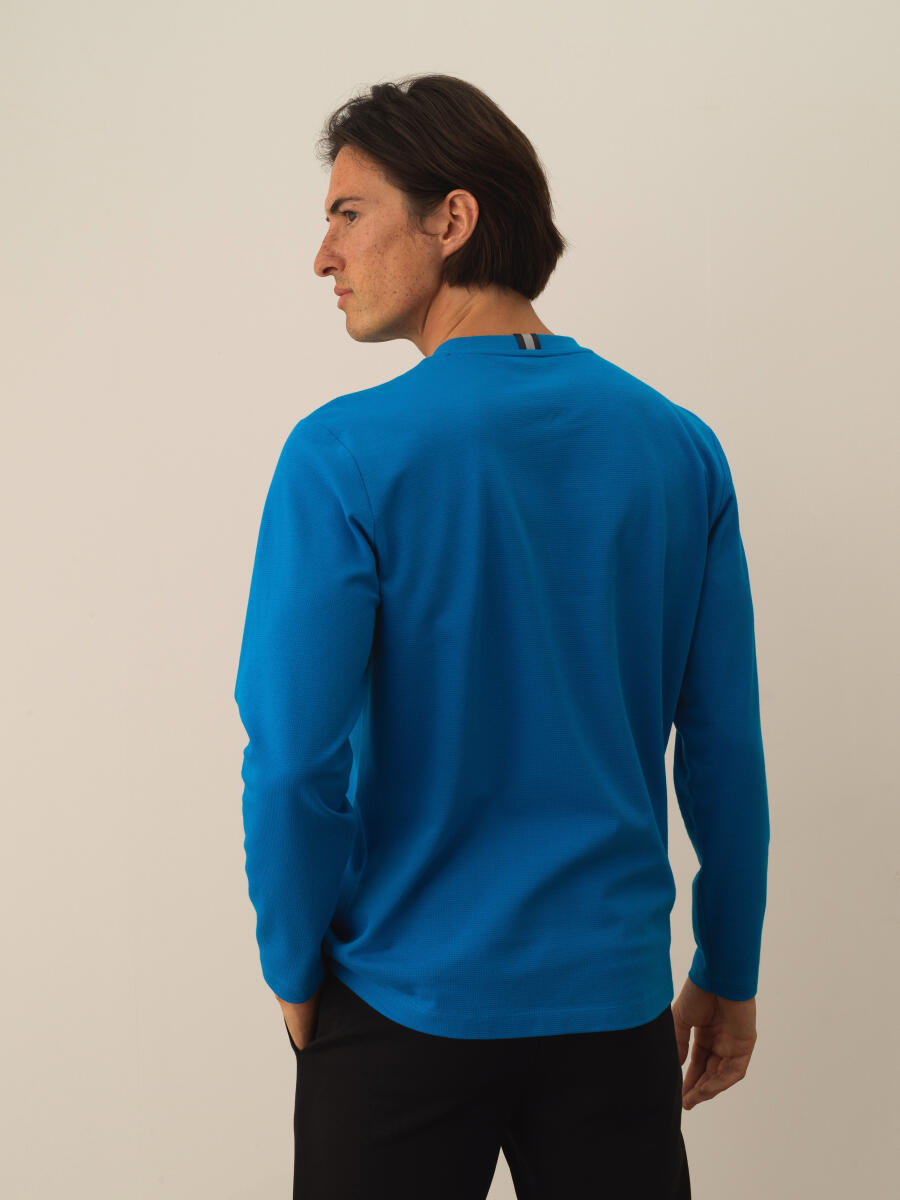 Navy Blue Modal Textured Slim Fit Long Sleeve T-Shirt - Xint