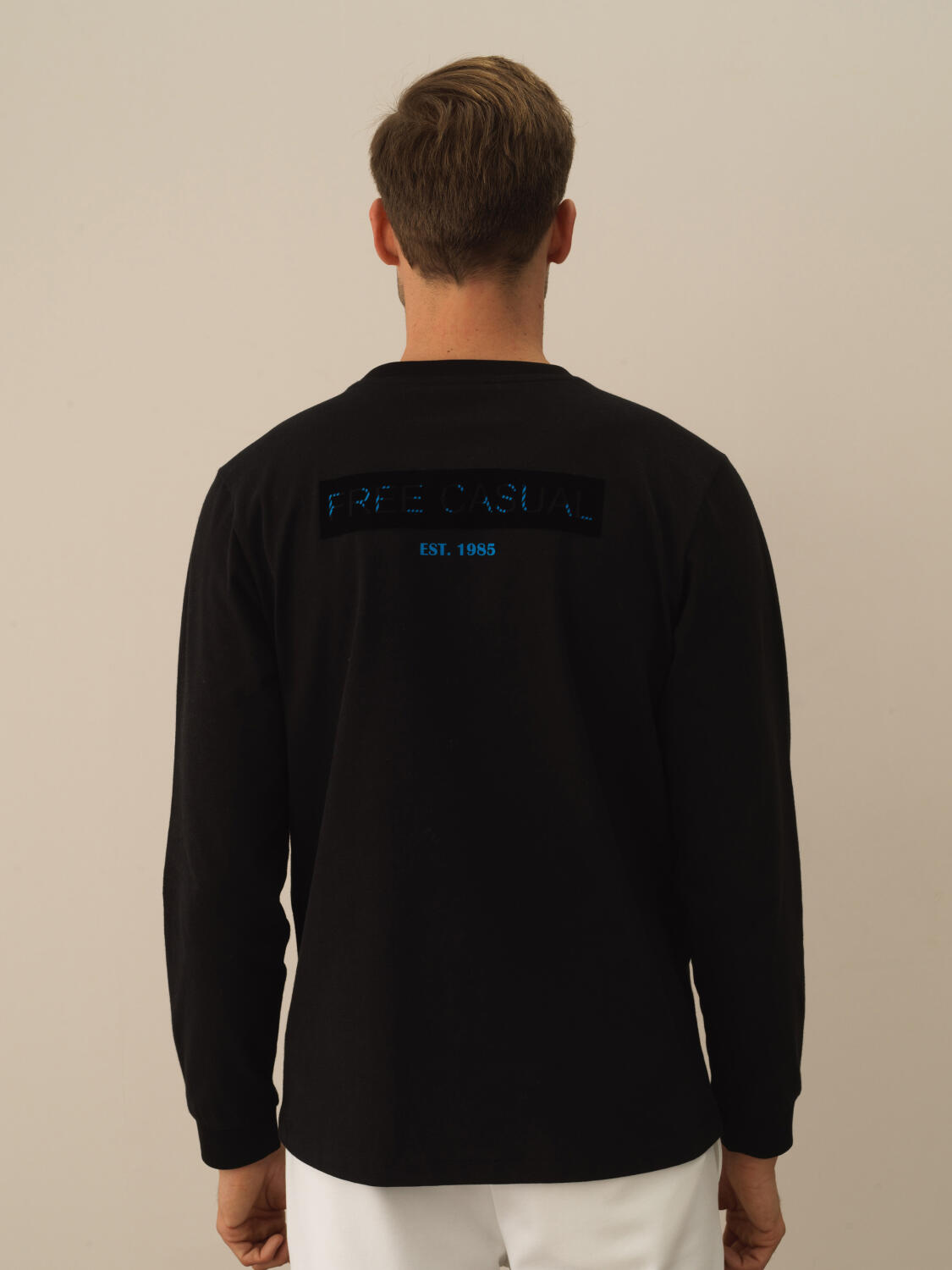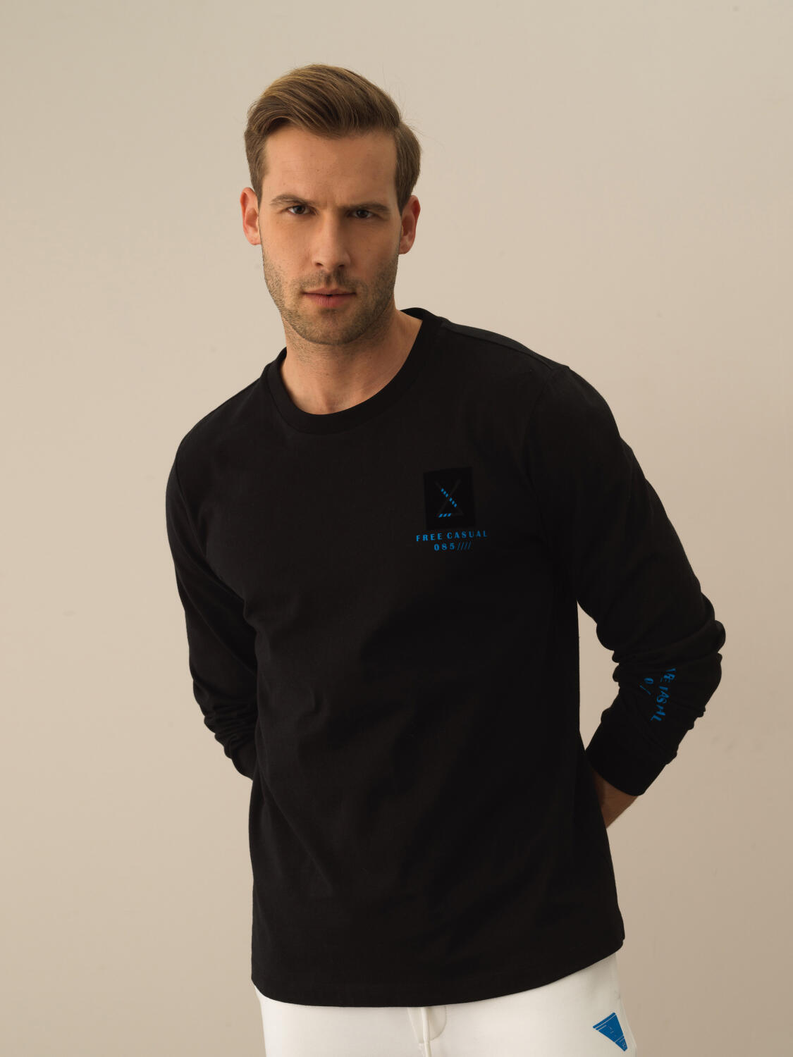 Siyah Pamuk Dokulu Regular Fit Uzun Kollu Tişört