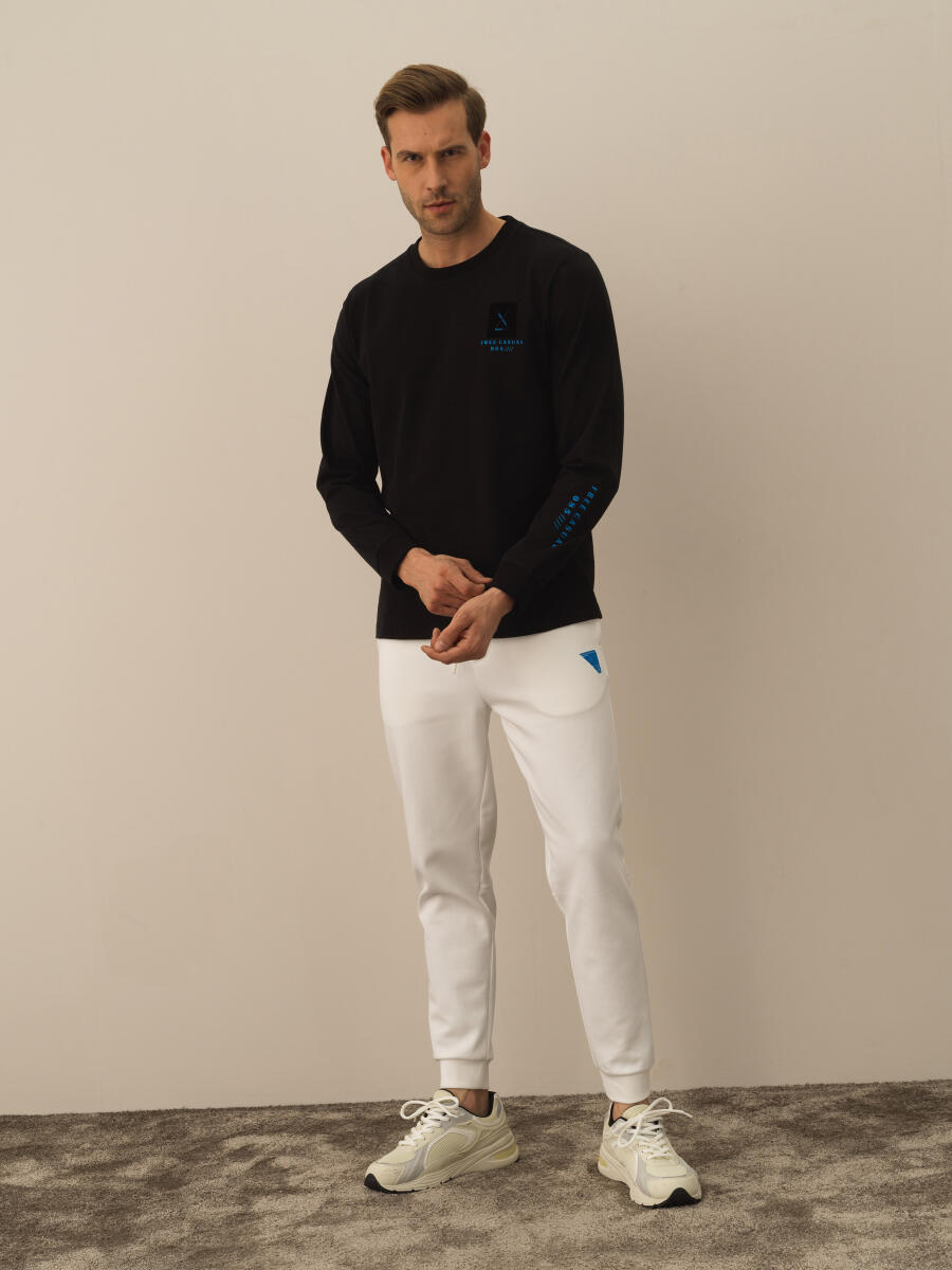Beyaz Pamuk Dokulu Regular Fit Uzun Kollu Tişört - Xint