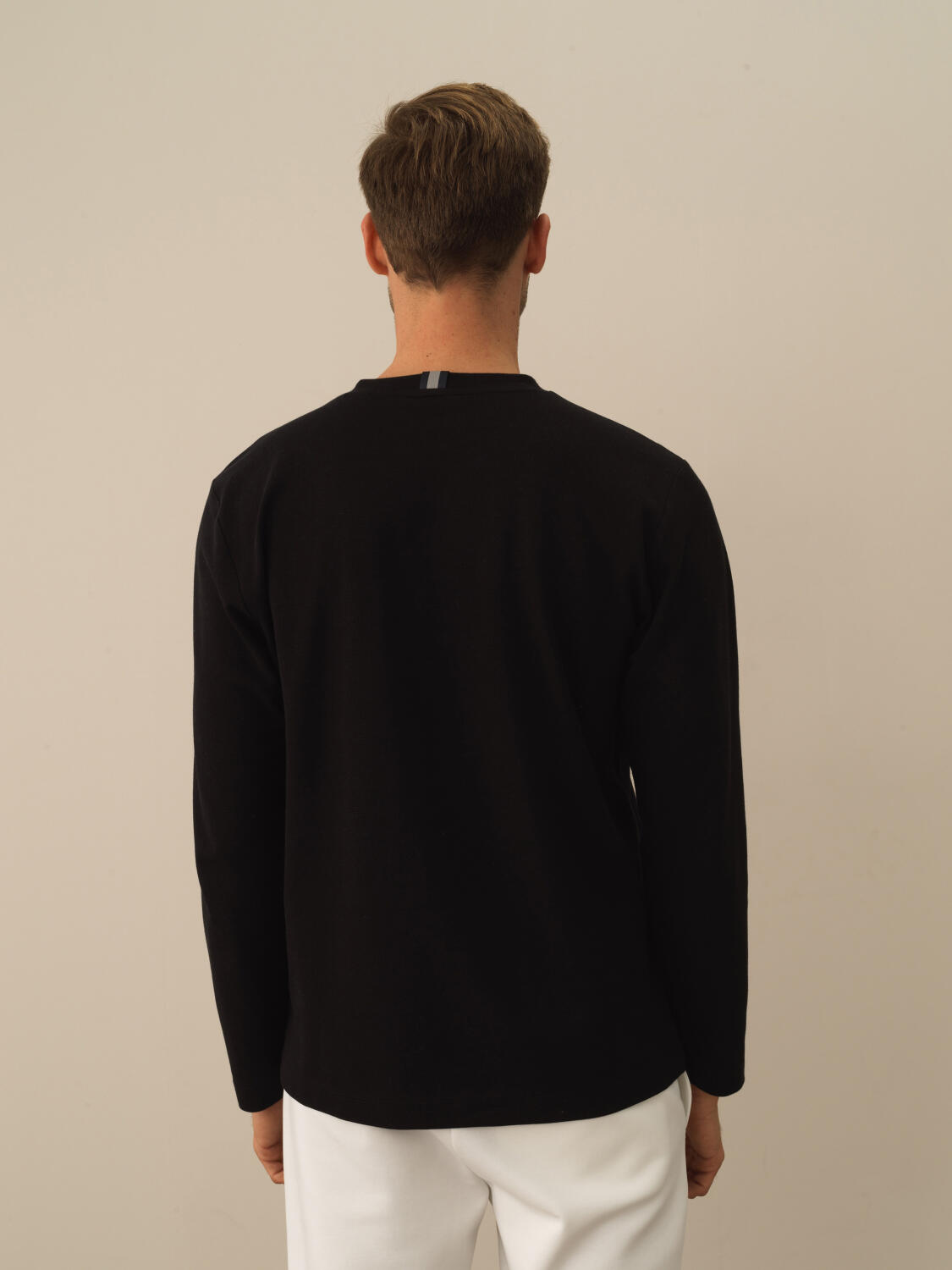 Black Modal Textured Slim Fit Long Sleeve T-Shirt - Xint