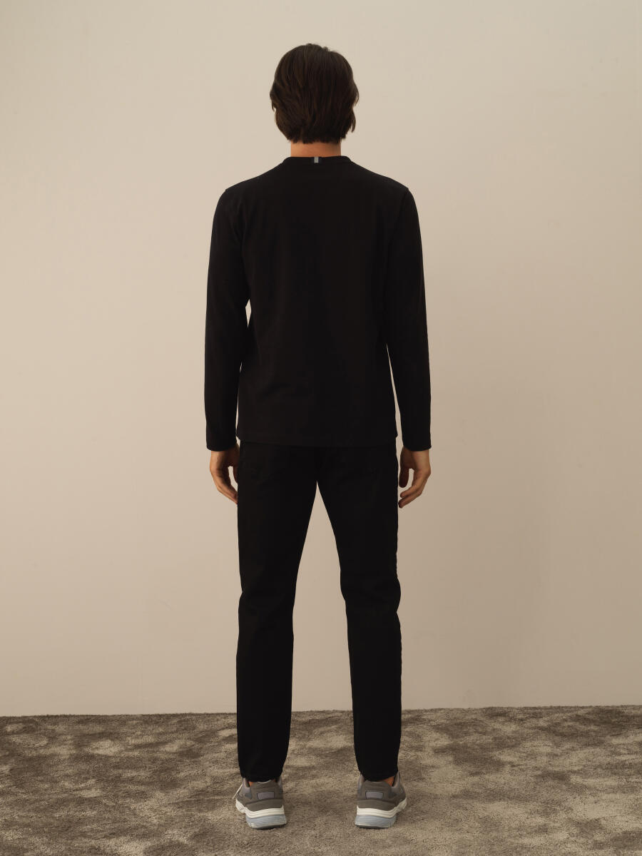 Black Modal Textured Slim Fit Long Sleeve T-Shirt - Xint