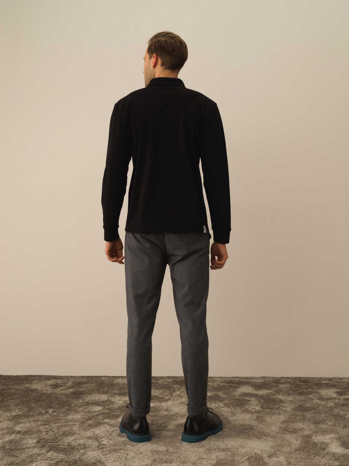 Black Modal Textured Slim Fit Long Sleeve T-Shirt - Xint