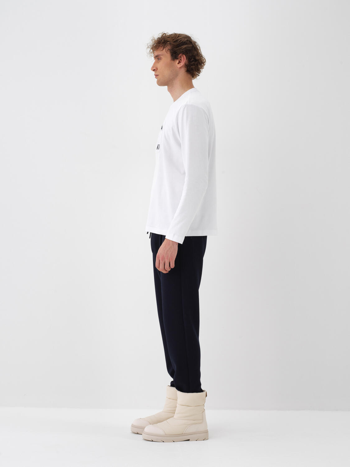 Beyaz Pamuk Dokulu Regular Fit Uzun Kollu Tişört - Xint