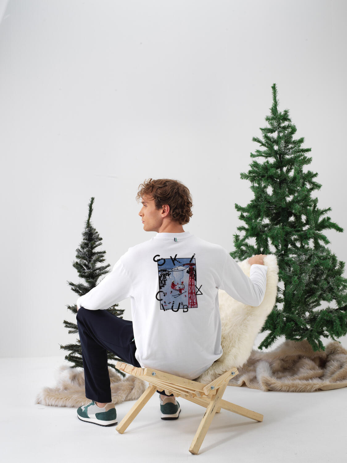 Beyaz Pamuk Dokulu Regular Fit Uzun Kollu Tişört
