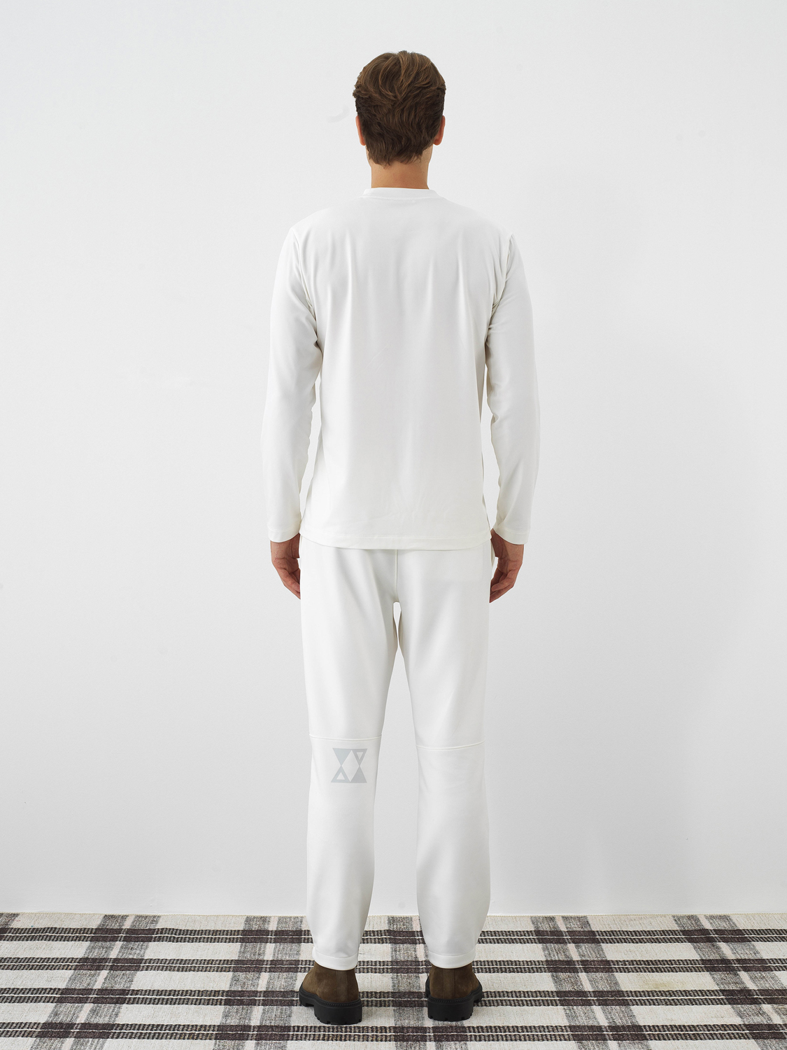 Beyaz Pamuk Dokulu Regular Fit Uzun Kollu Tişört - Xint