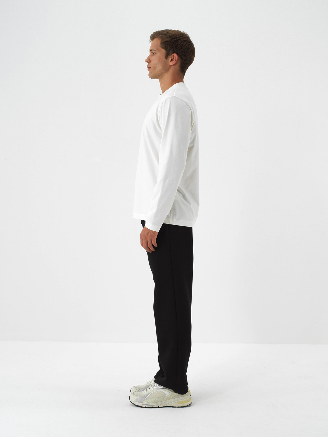 Beyaz Pamuk Dokulu Regular Fit Uzun Kollu Tişört - Xint