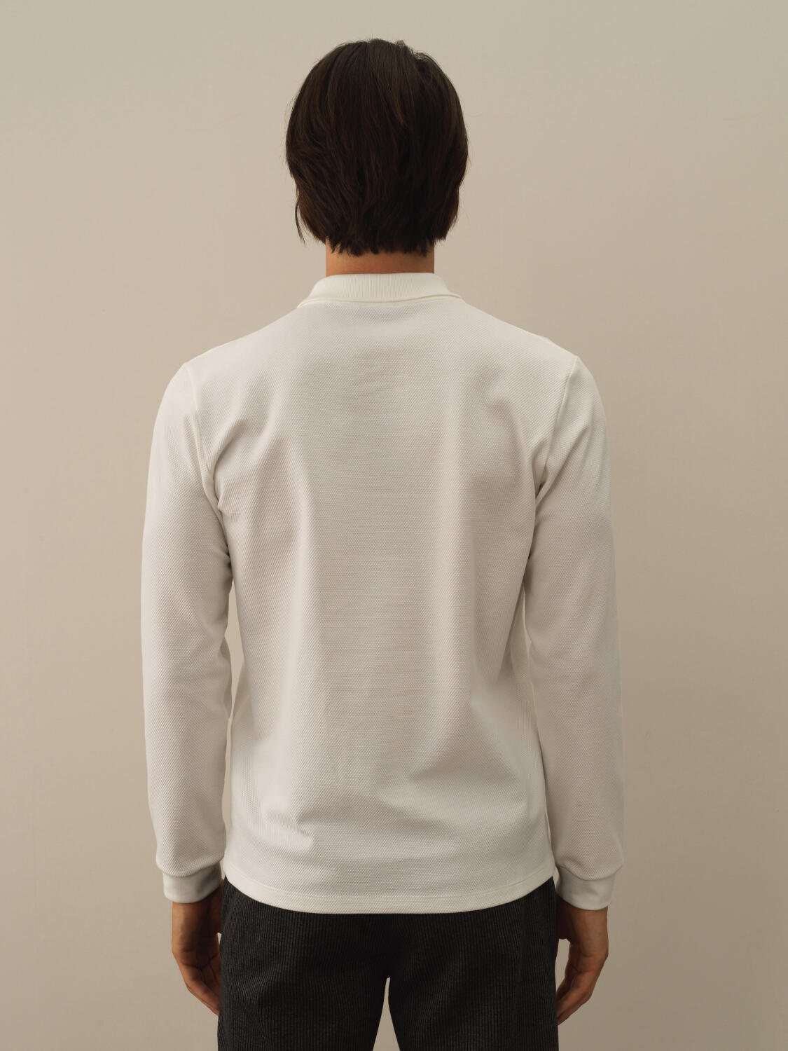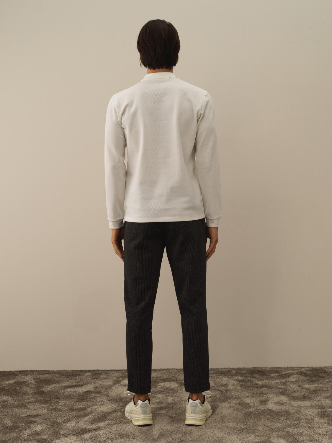 Kırık Beyaz Pamuk Dokulu Slim Fit Uzun Kollu Tişört