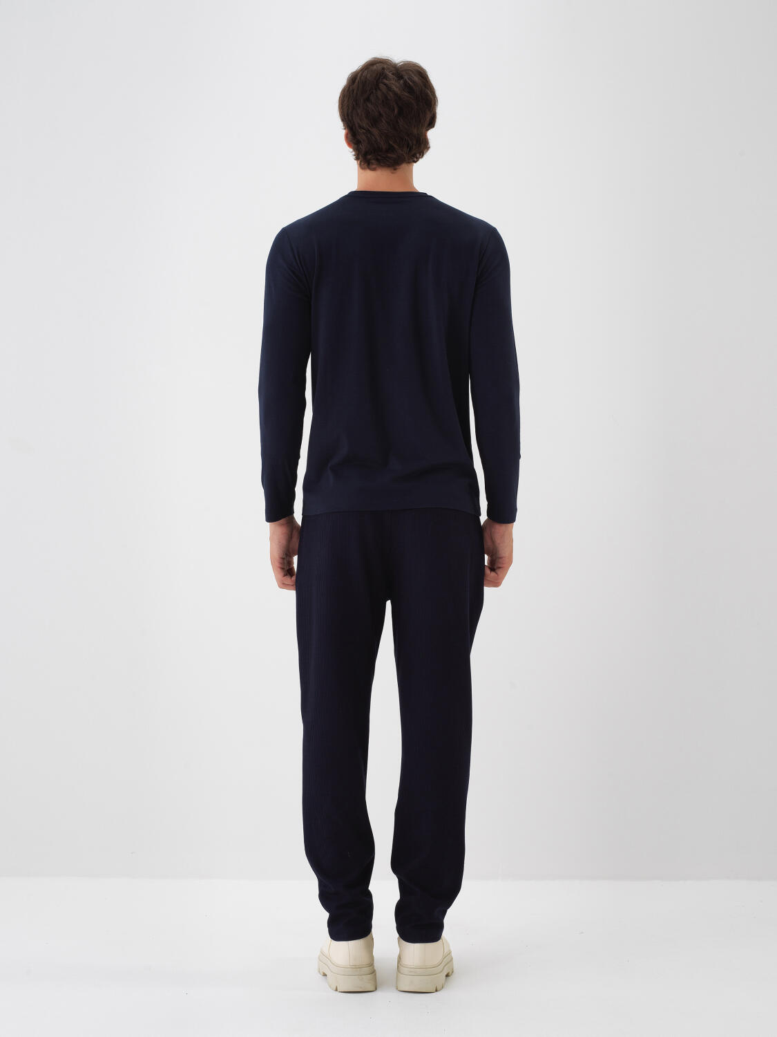 Lacivert Modal Dokulu Slim Fit Uzun Kollu Tişört - Xint