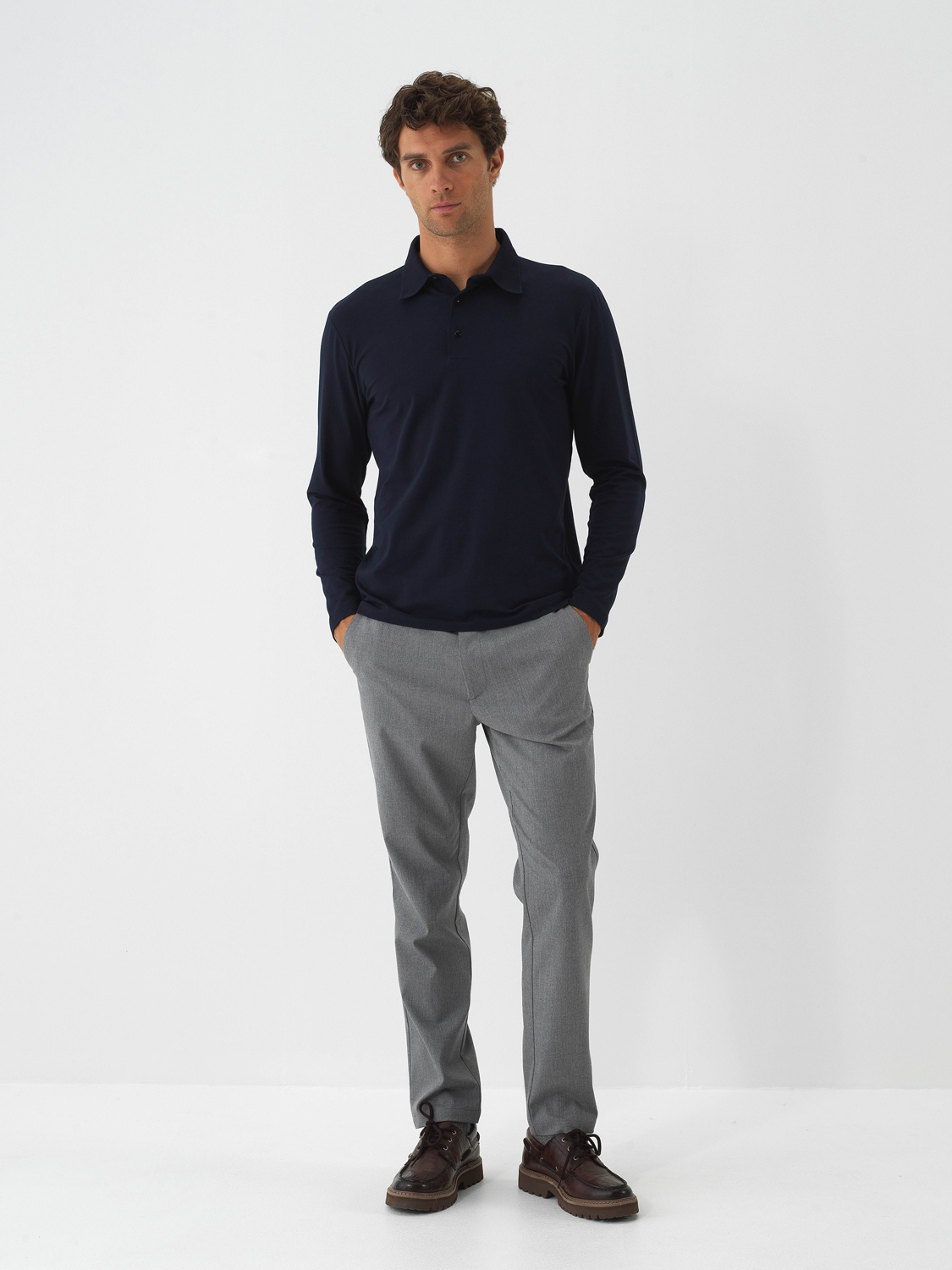 Lacivert Modal Dokulu Slim Fit Uzun Kollu Tişört - Xint