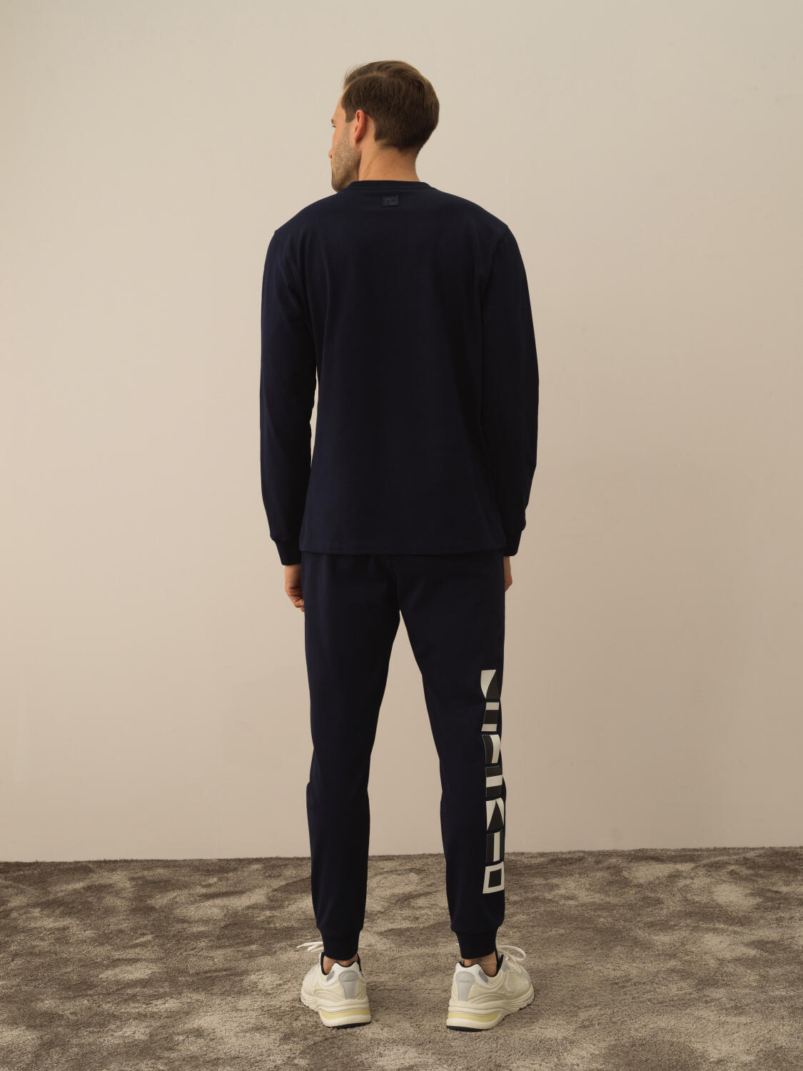 Lacivert Pamuk Dokulu Regular Fit Uzun Kollu Tişört - Xint