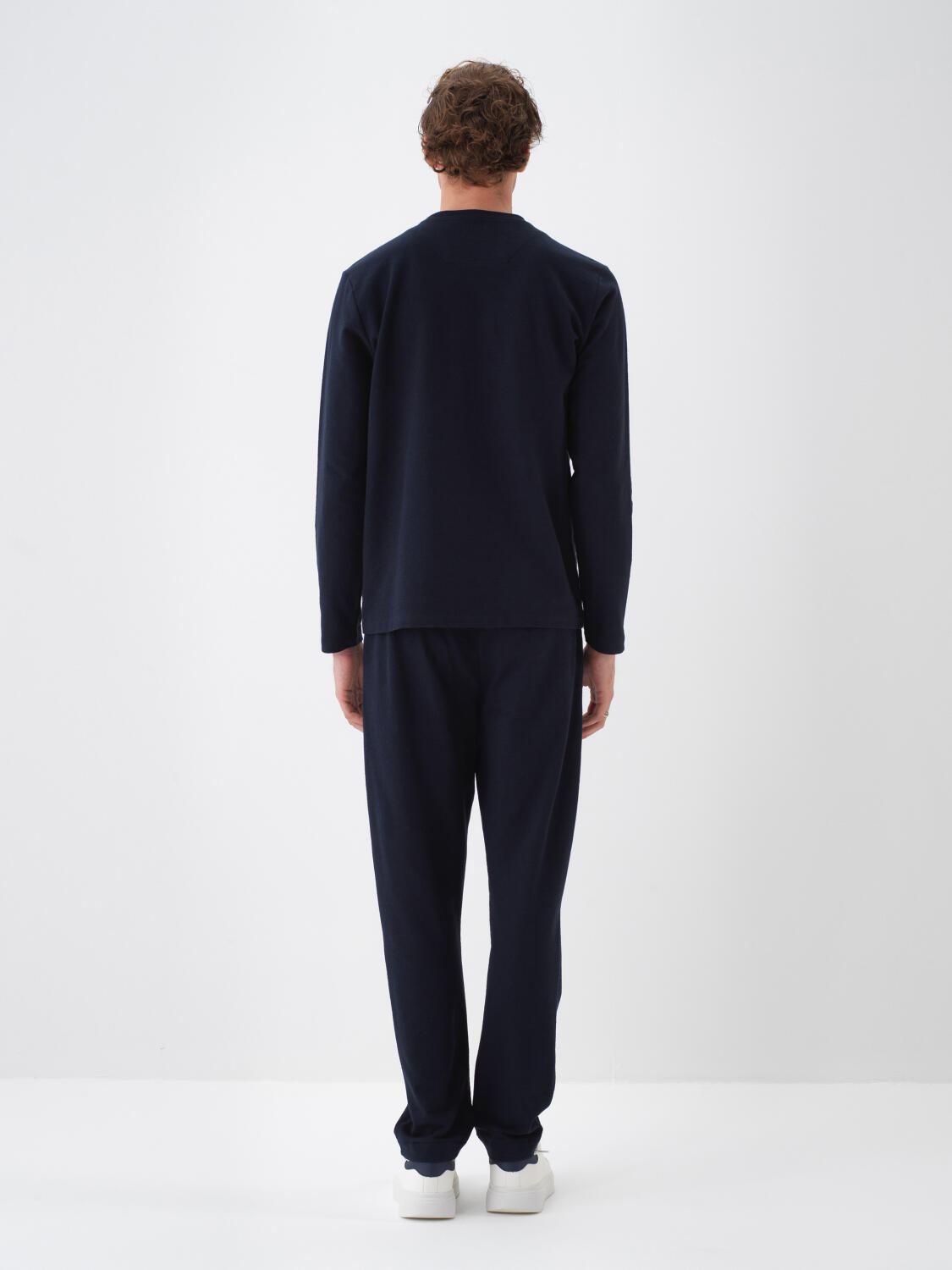 Lacivert Pamuk Dokulu Regular Fit Uzun Kollu Tişört