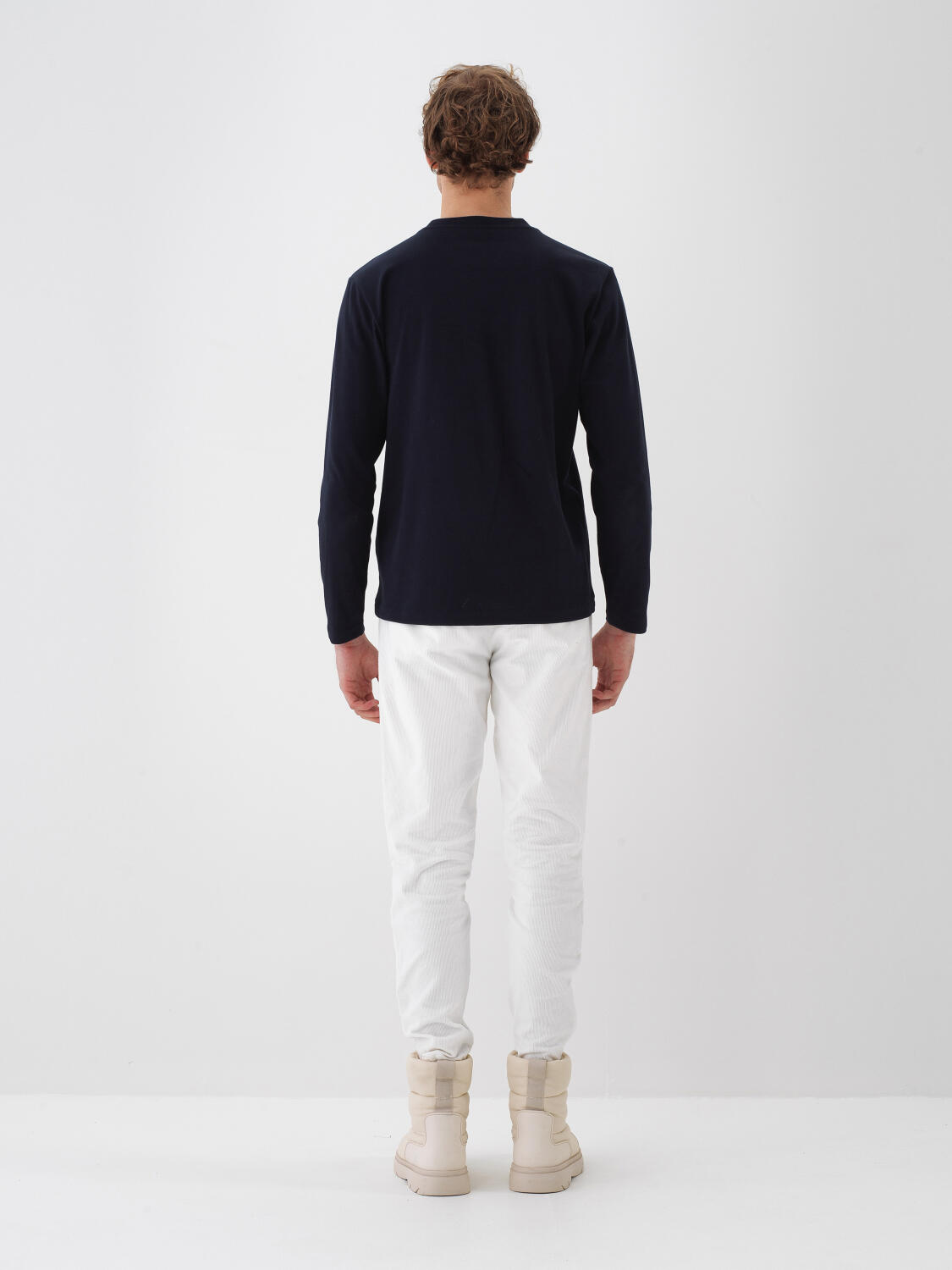 Lacivert Pamuk Dokulu Regular Fit Uzun Kollu Tişört