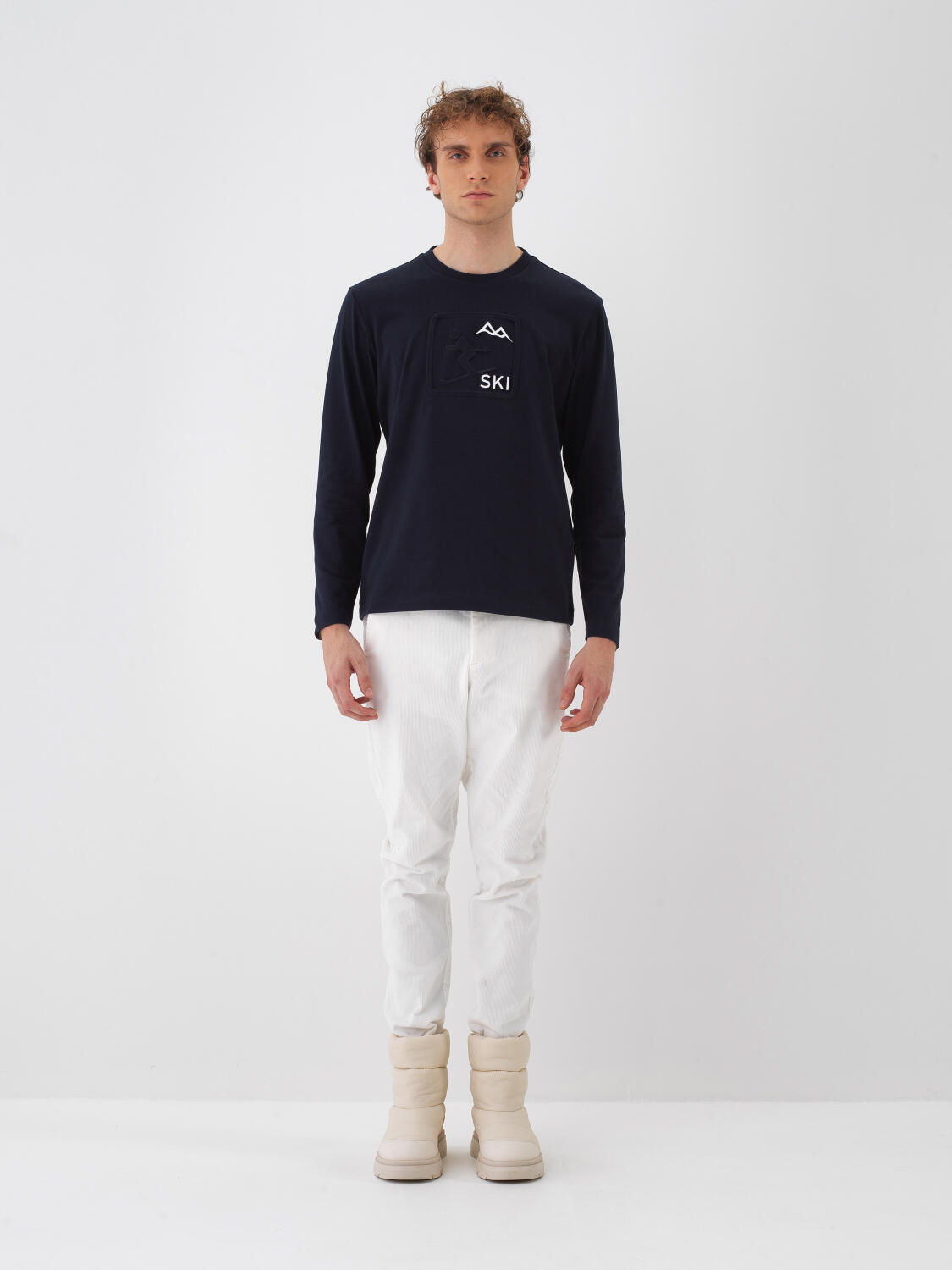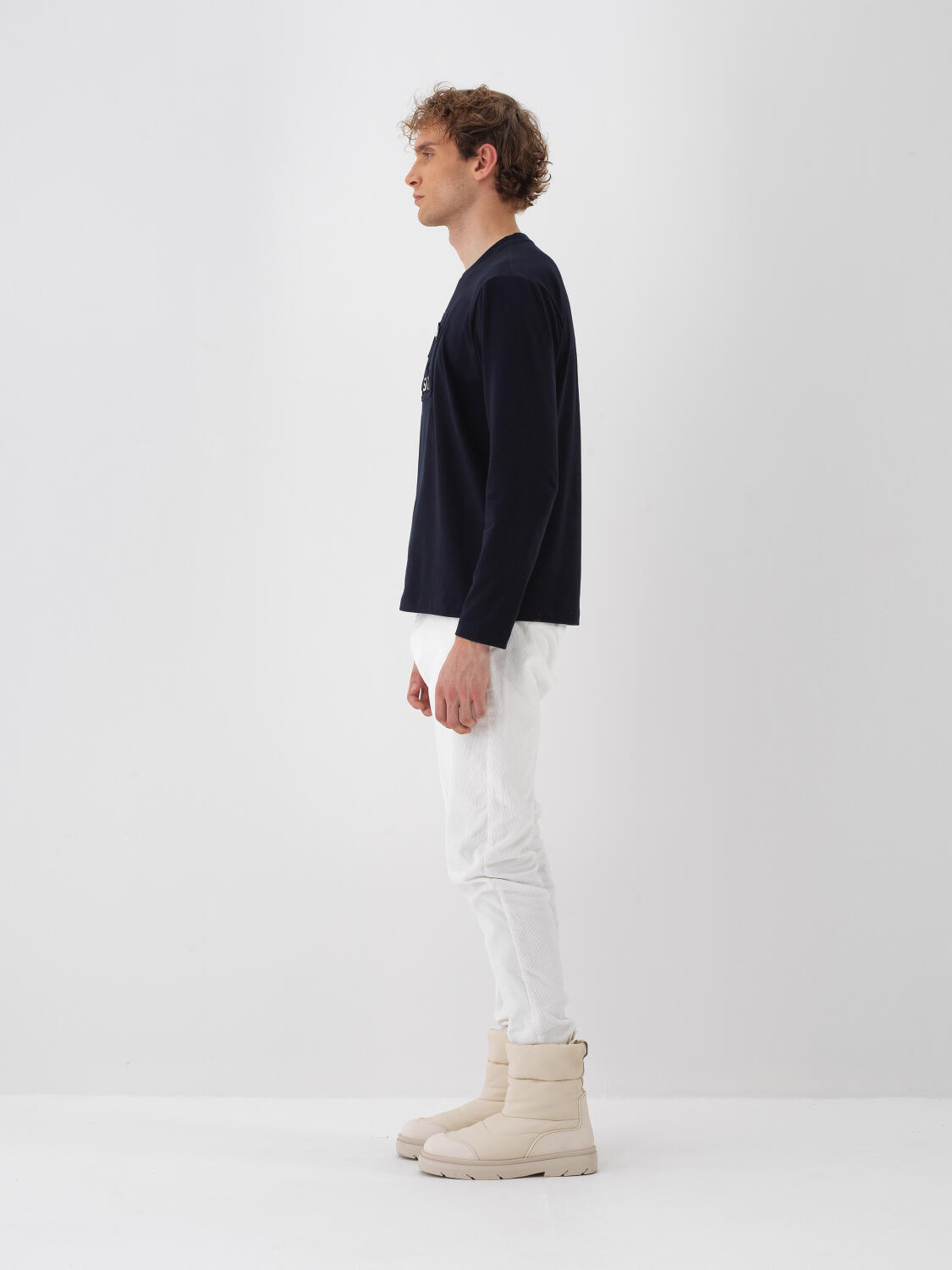 Ekru Pamuk Dokulu Regular Fit Uzun Kollu Tişört - Xint