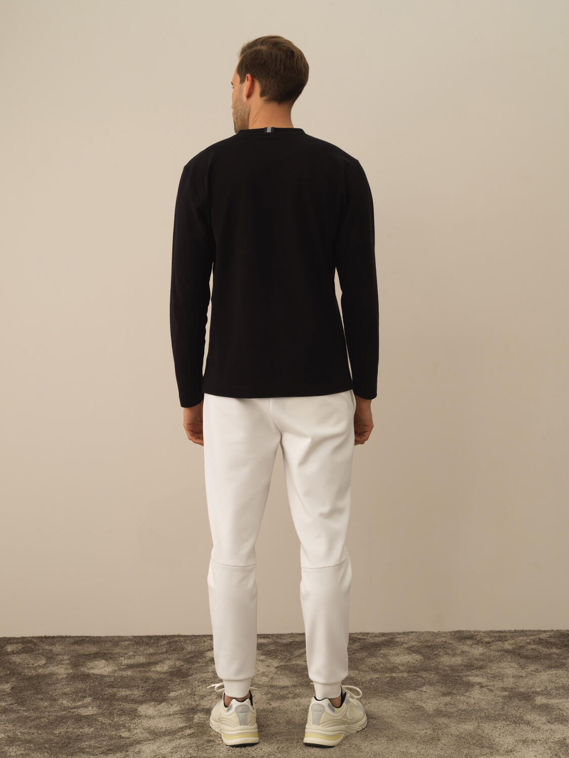 Siyah Pamuk Dokulu Regular Fit Uzun Kollu Tişört