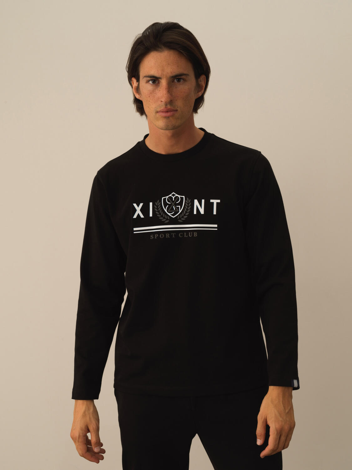 Siyah Modal Dokulu Slim Fit Uzun Kollu Tişört - Xint