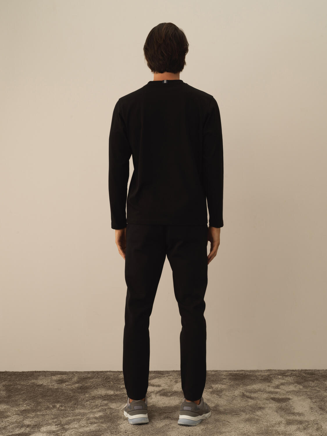 Siyah Pamuk Dokulu Regular Fit Uzun Kollu Tişört