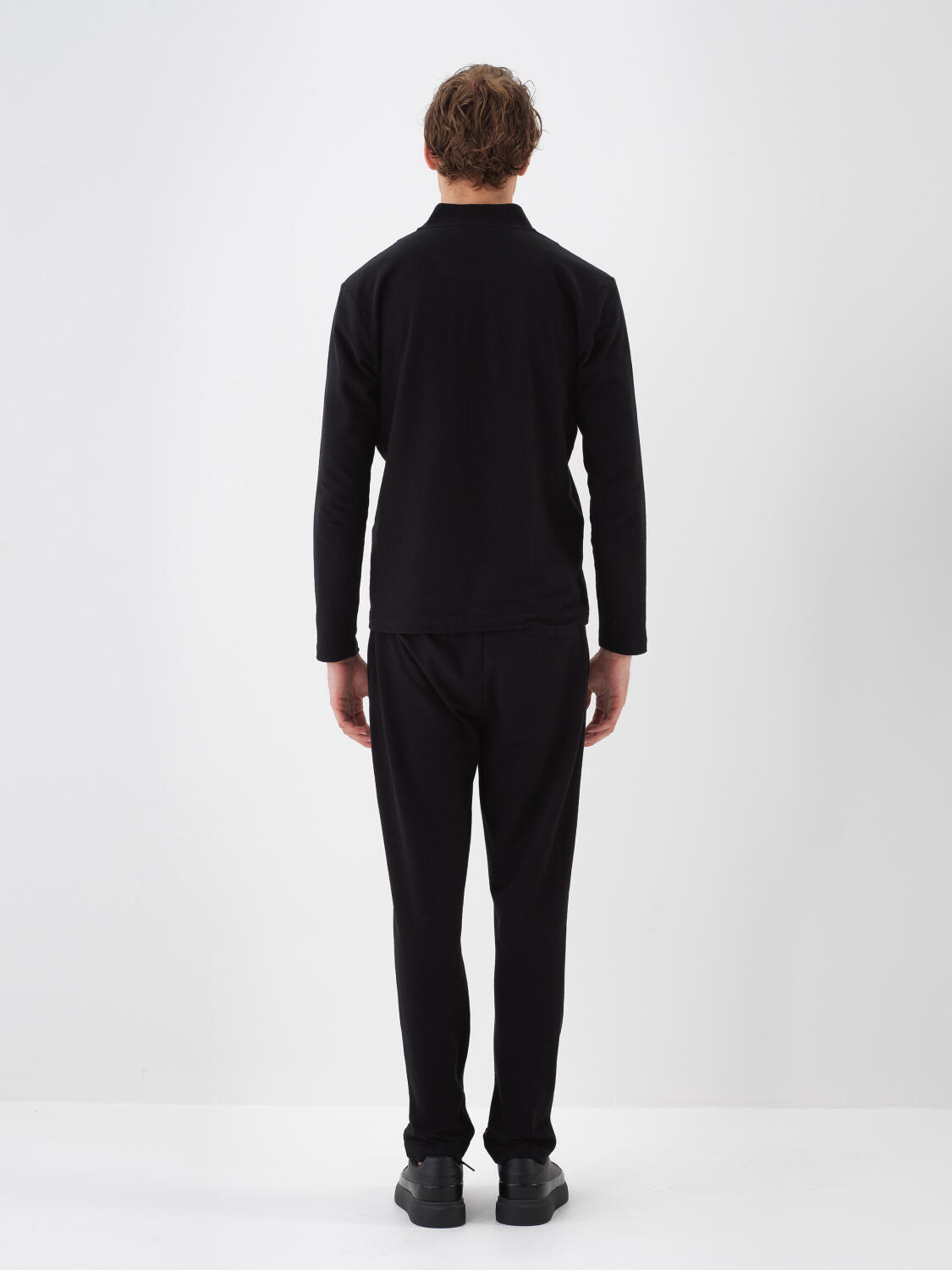 Siyah Pamuk Dokulu Regular Fit Uzun Kollu Tişört