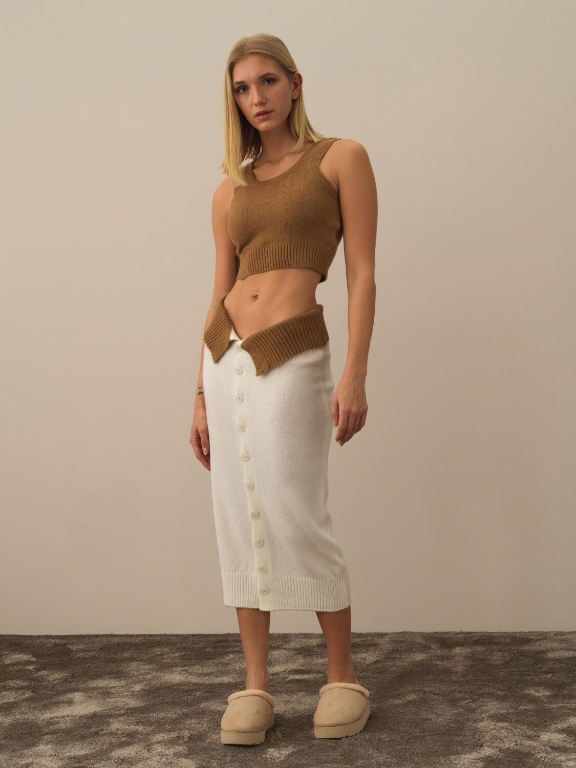 Ekru Pamuk Dokulu Slim Fit Triko Atlet - Xint