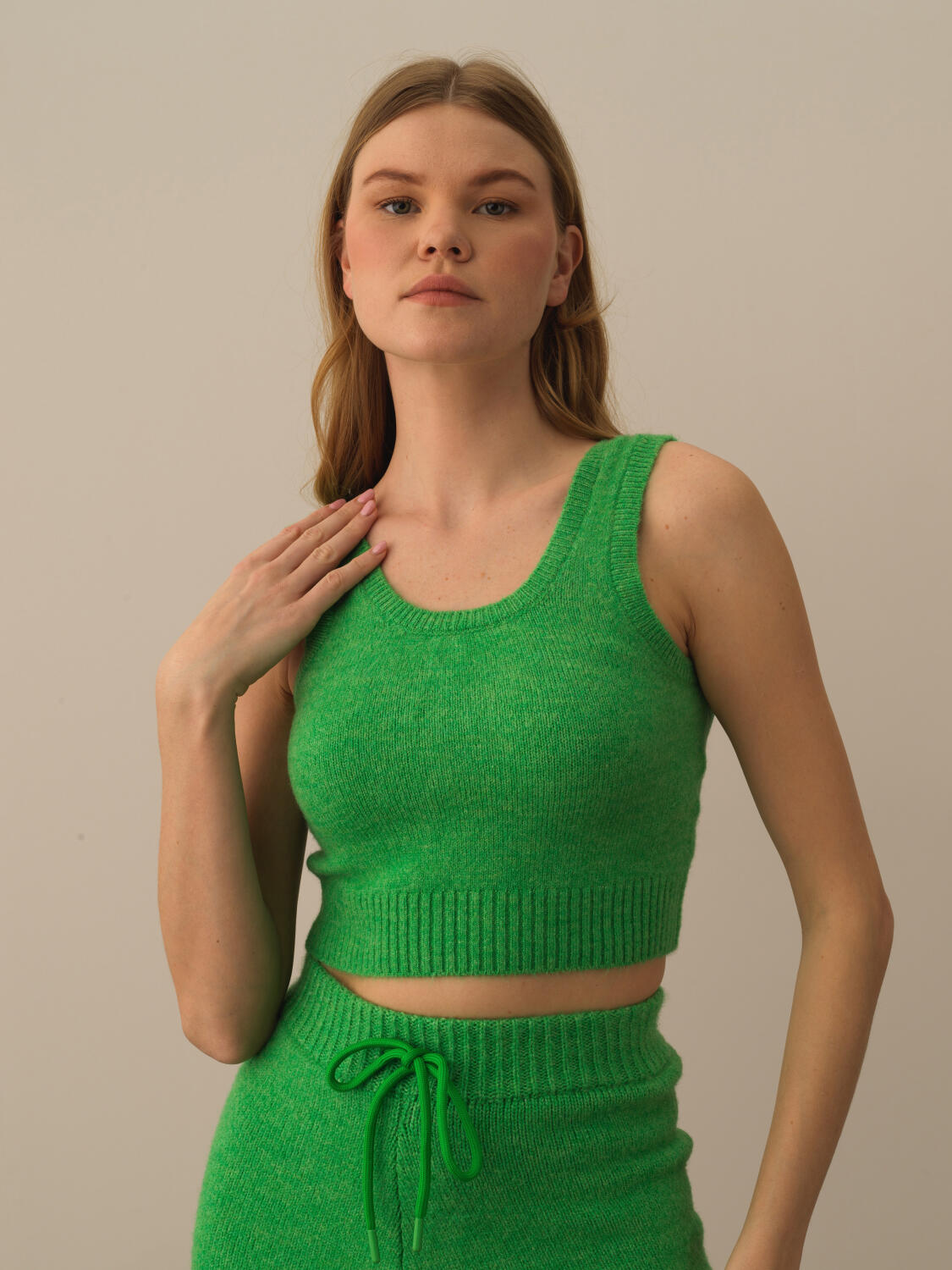 Yeşil Pamuk Dokulu Slim Fit Triko Atlet