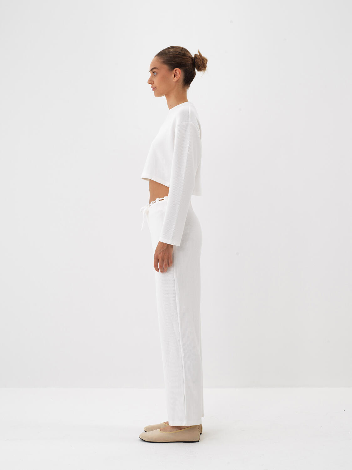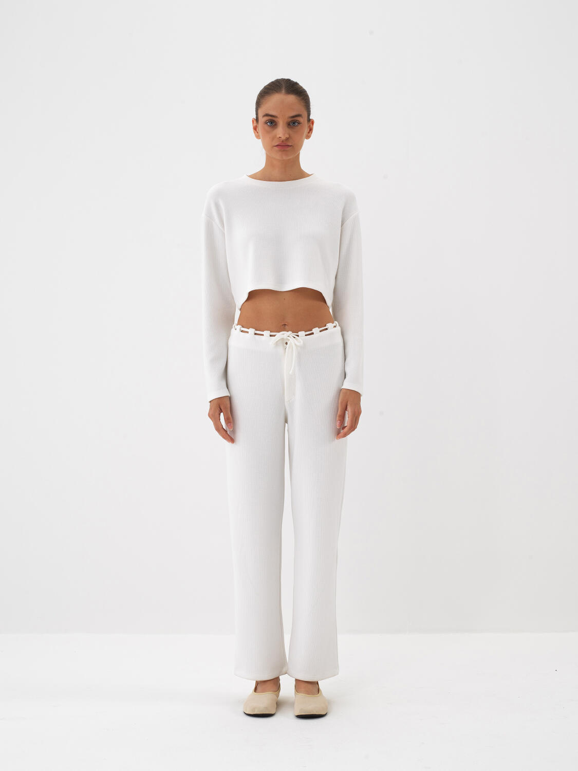 Ekru Esnek Dokulu Regular Fit Sweat Pantolon - Xint