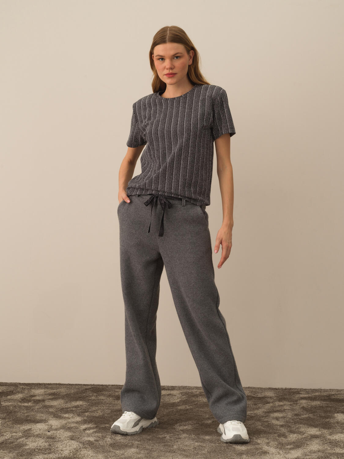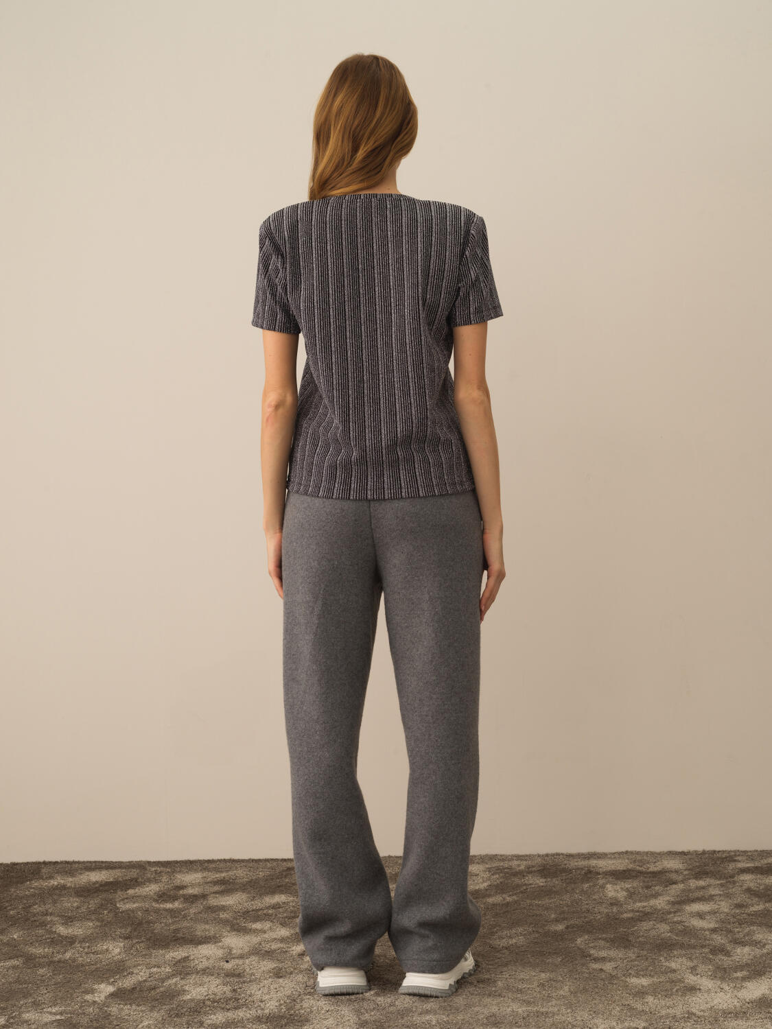 Siyah Işıltılı Lurex Detaylı Regular Fit Bluz