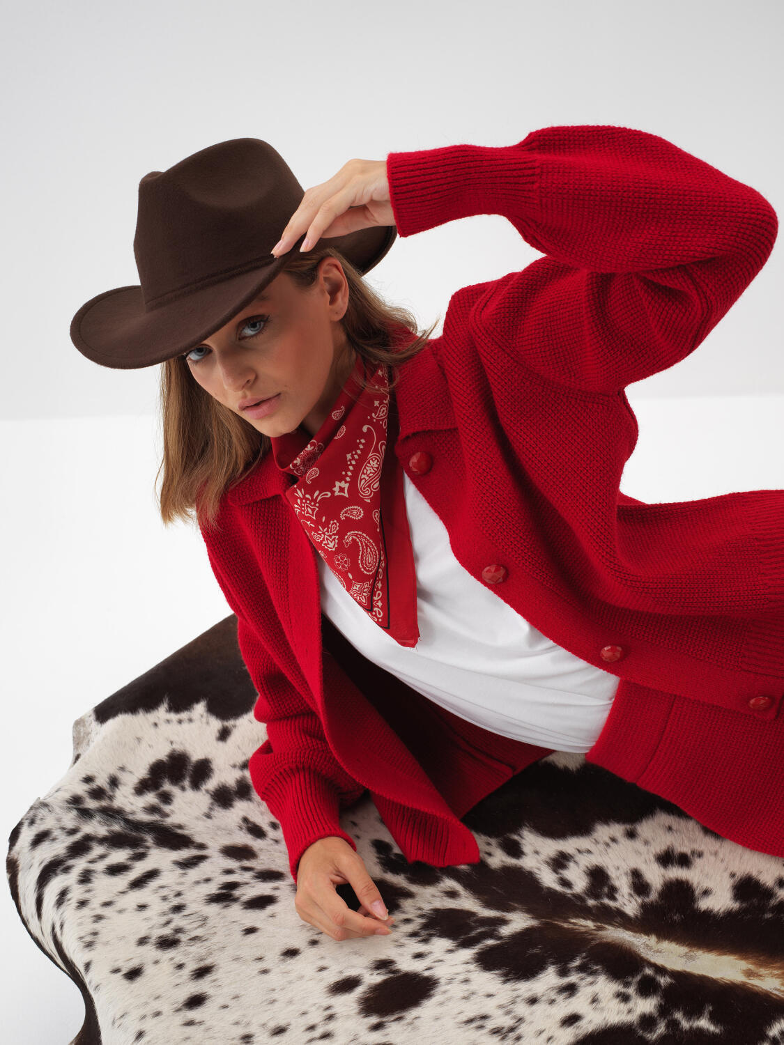 Kırmızı Doğal Yün Dokulu Oversize Ceket