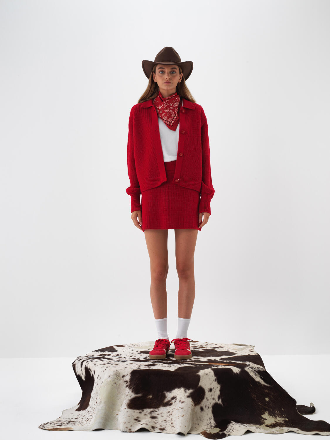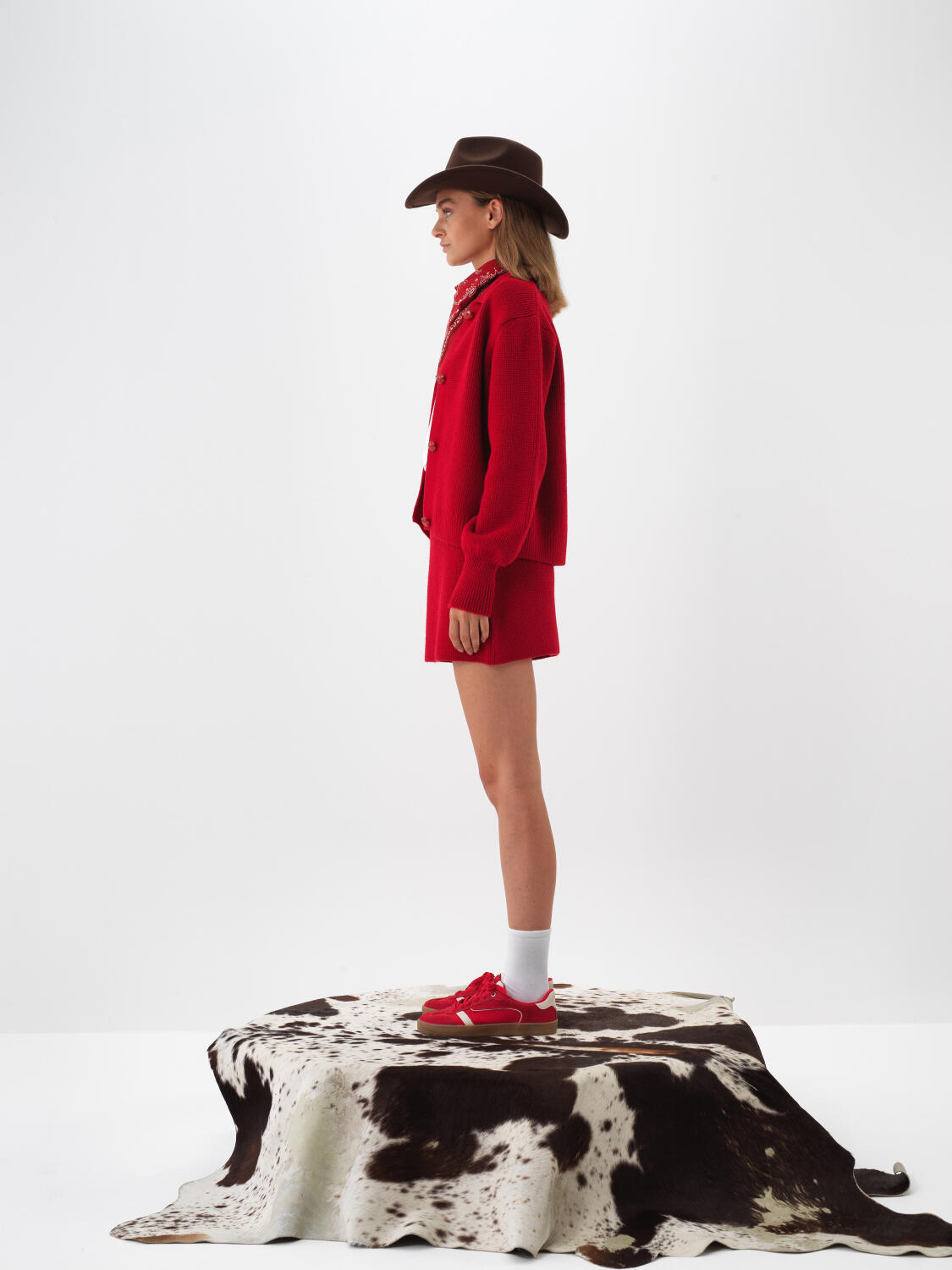Kırmızı Doğal Yün Dokulu Regular Fit Etek - Xint