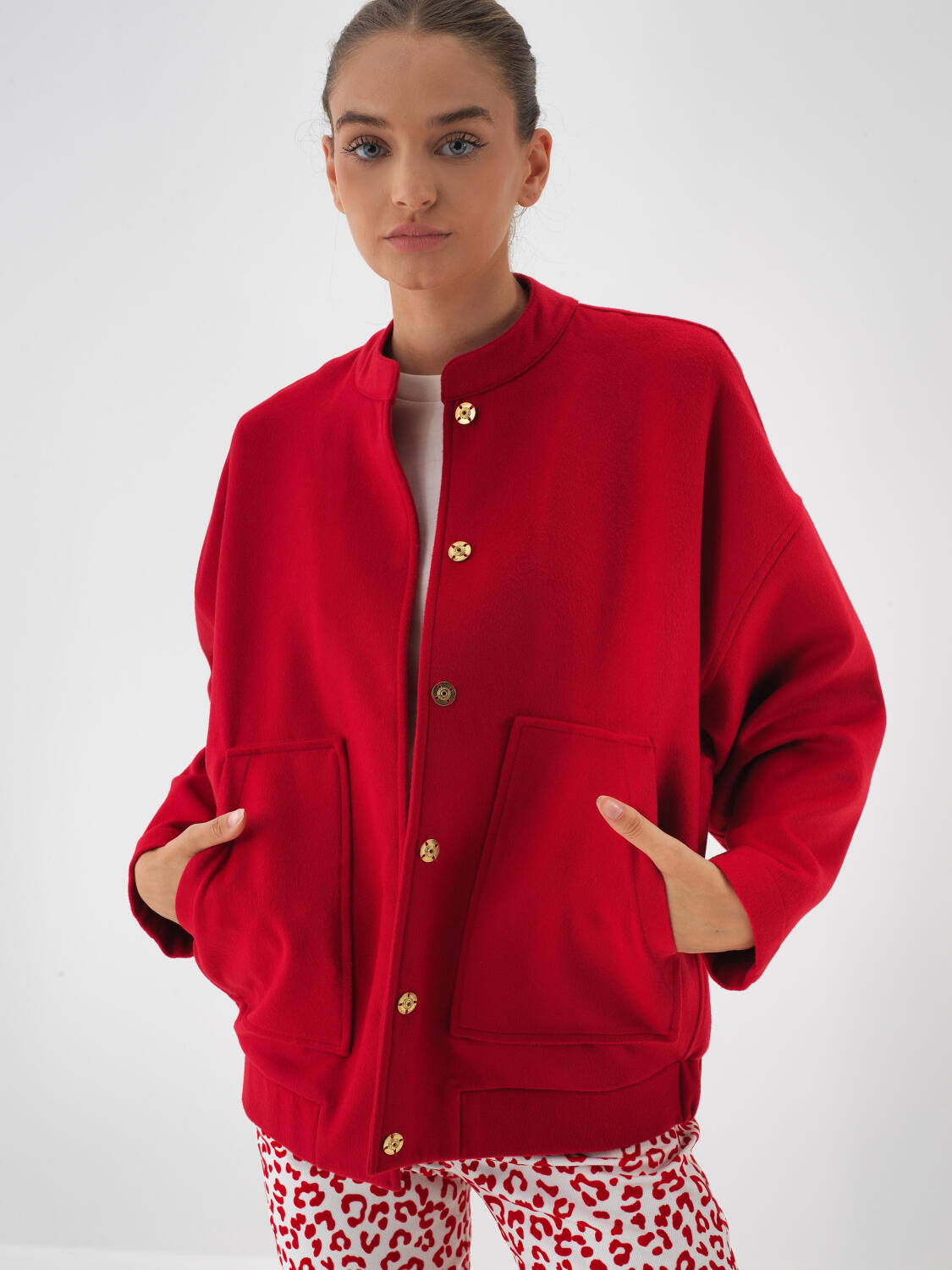 Kırmızı Esnek Dokulu Oversize Ceket