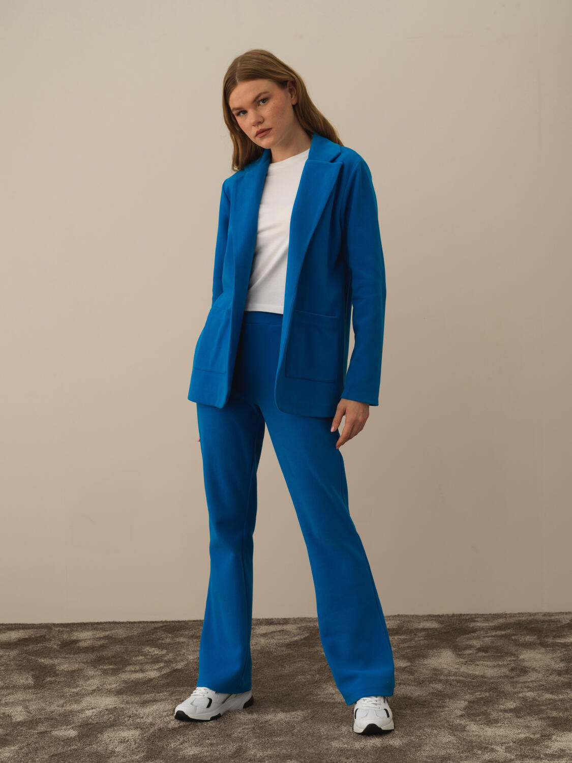 Lacivert Esnek Dokulu Oversize Ceket - Xint