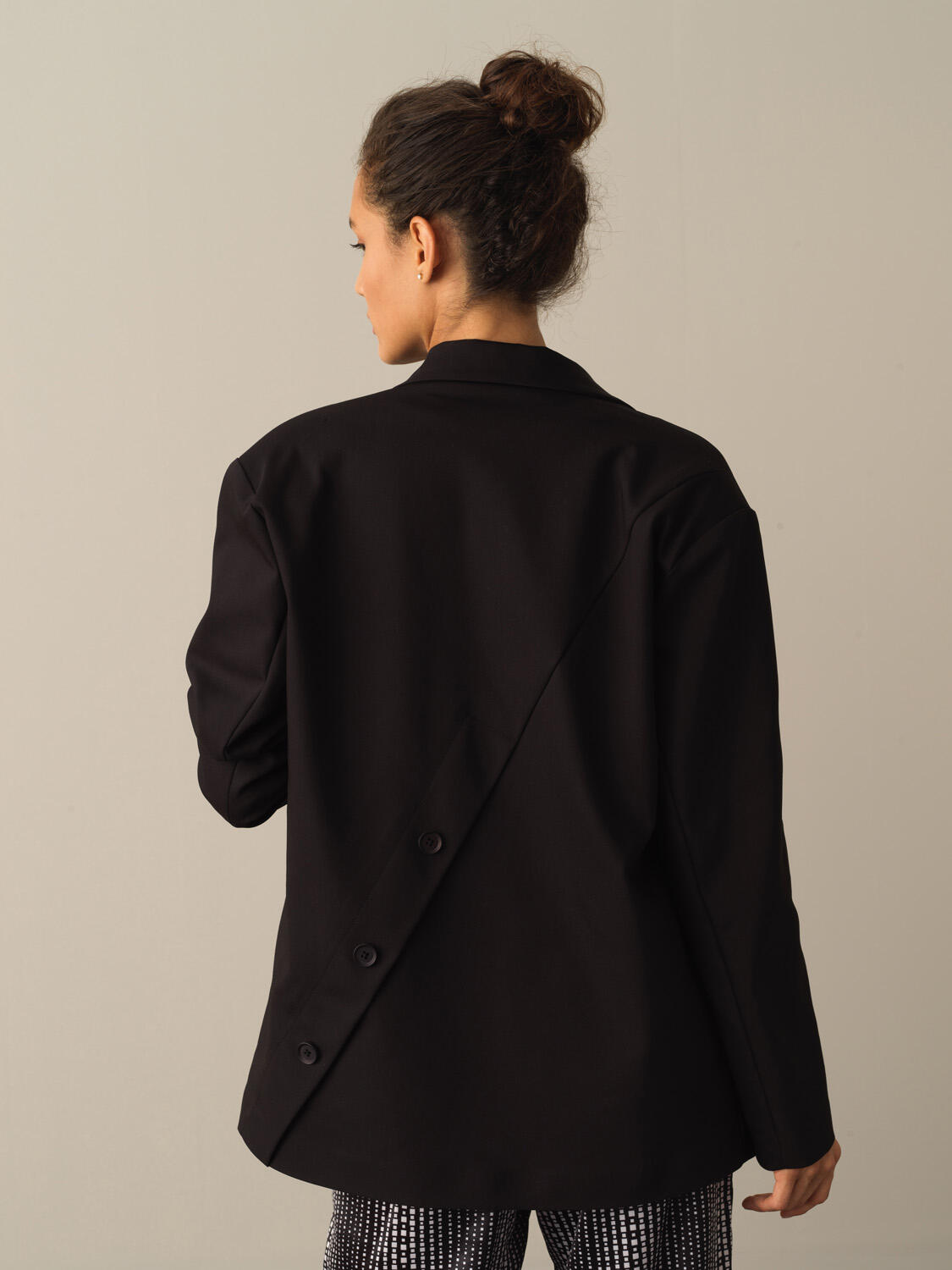 Navy Blue Modal Textured Oversized Jacket - Xint