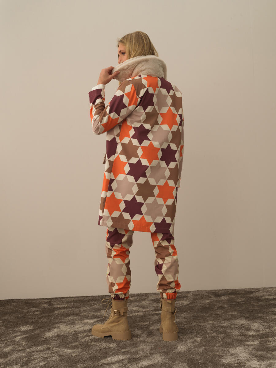 Collar with Fur Regular Fit Panel Printed Jacket - Xint