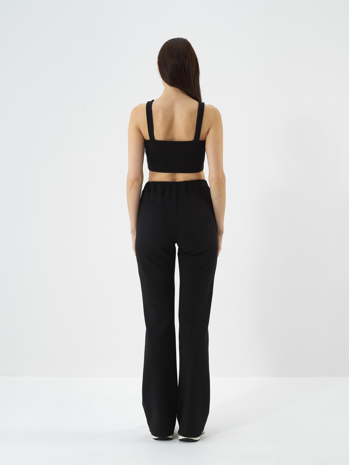 Siyah Esnek Dokulu Slim Fit Crop - Xint
