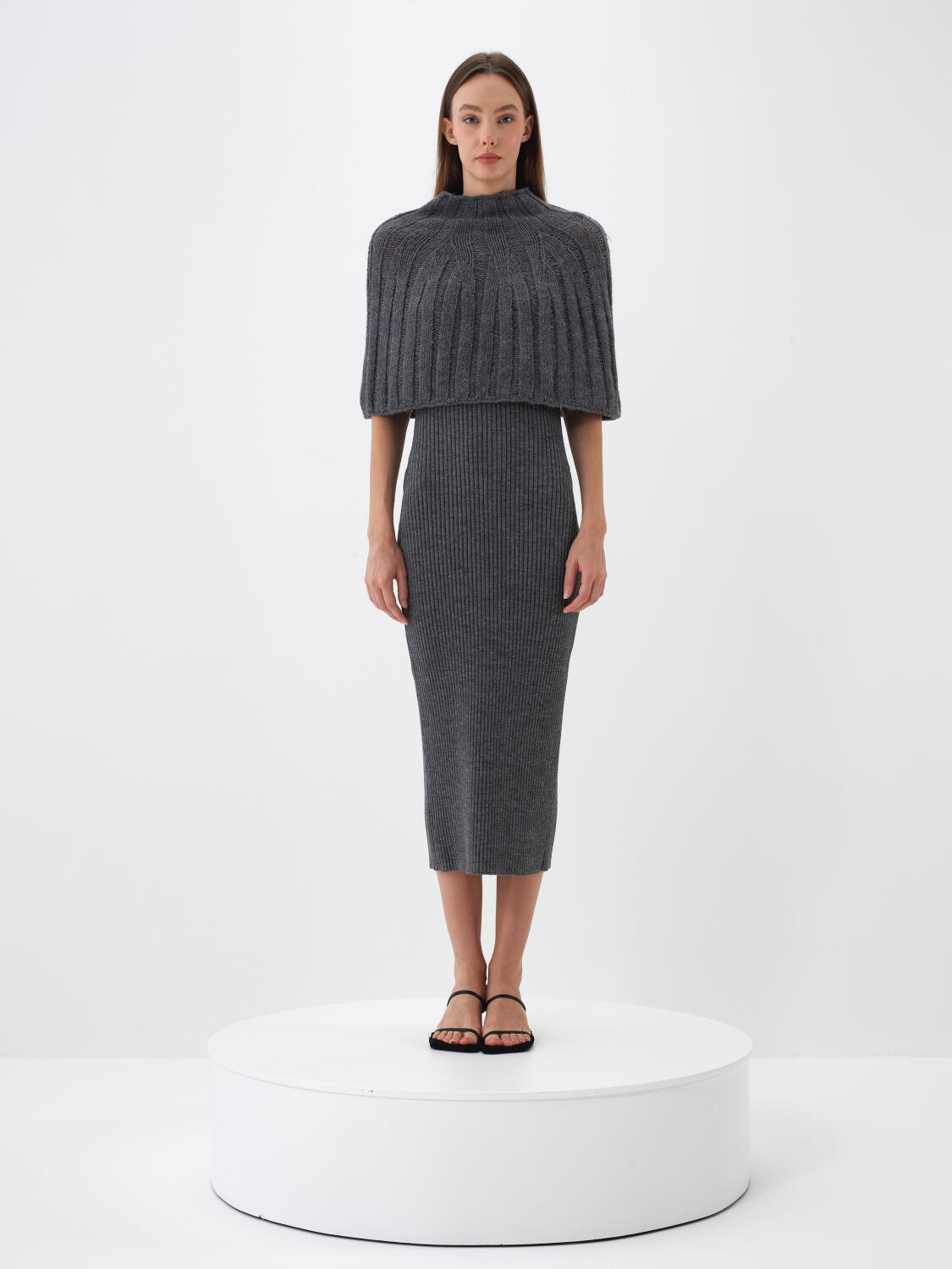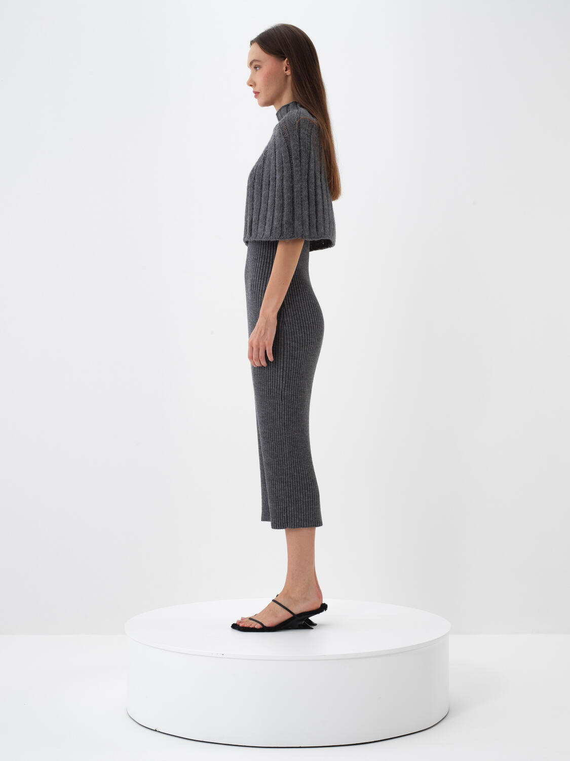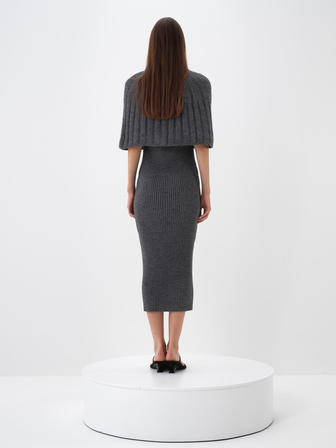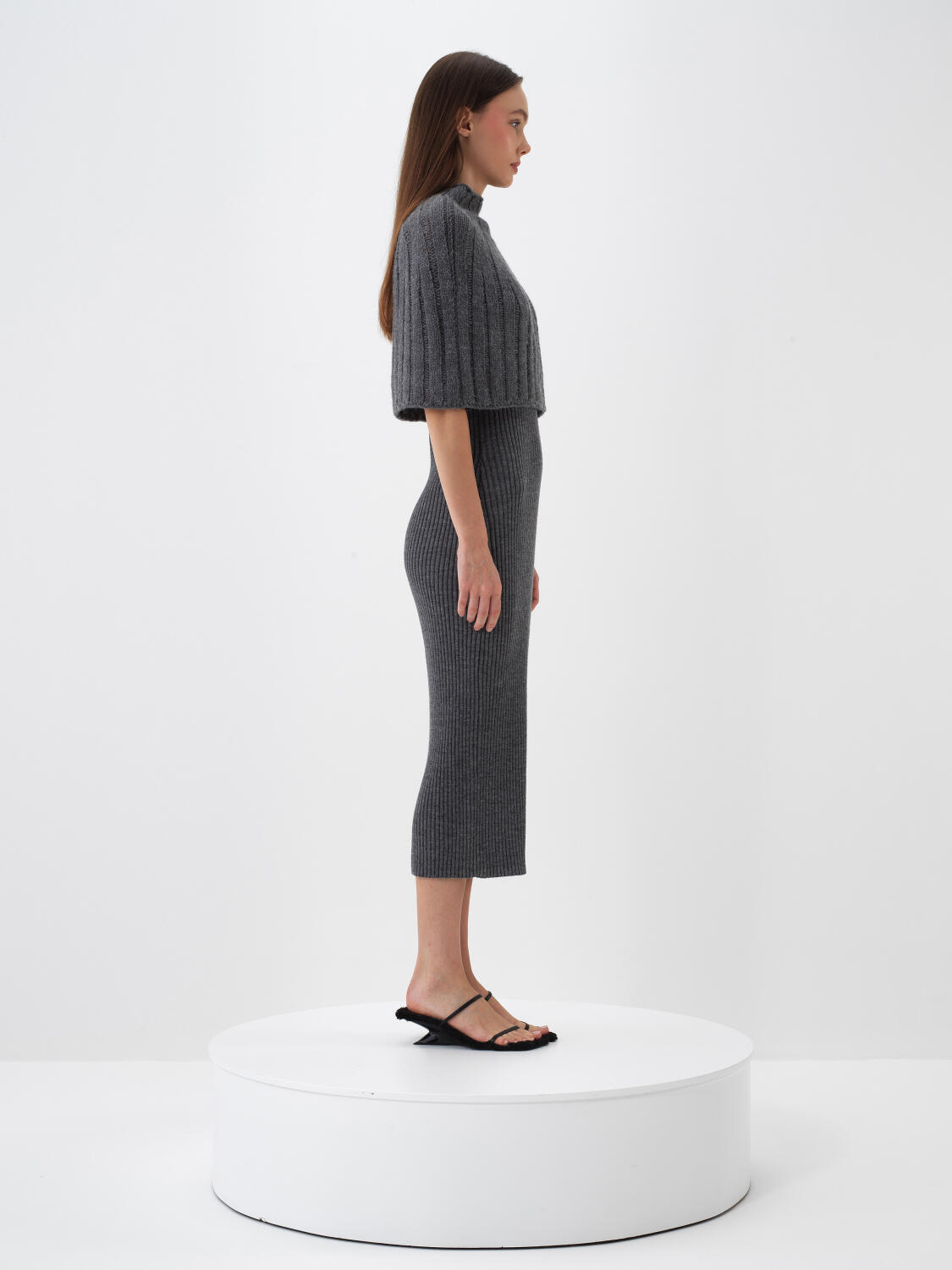 Antrasit Doğal Yün Dokulu Regular Fit Elbise