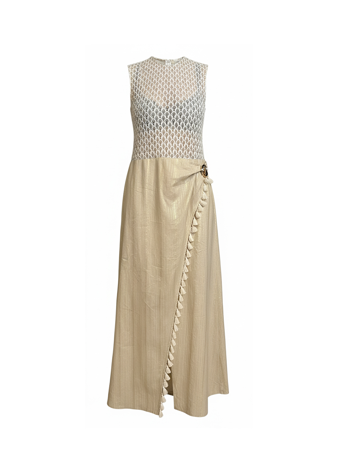 Bej Keten Karışımlı Regular Fit Elbise