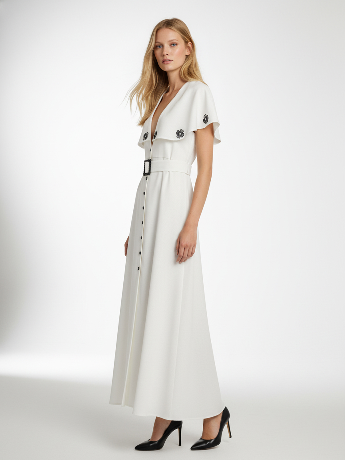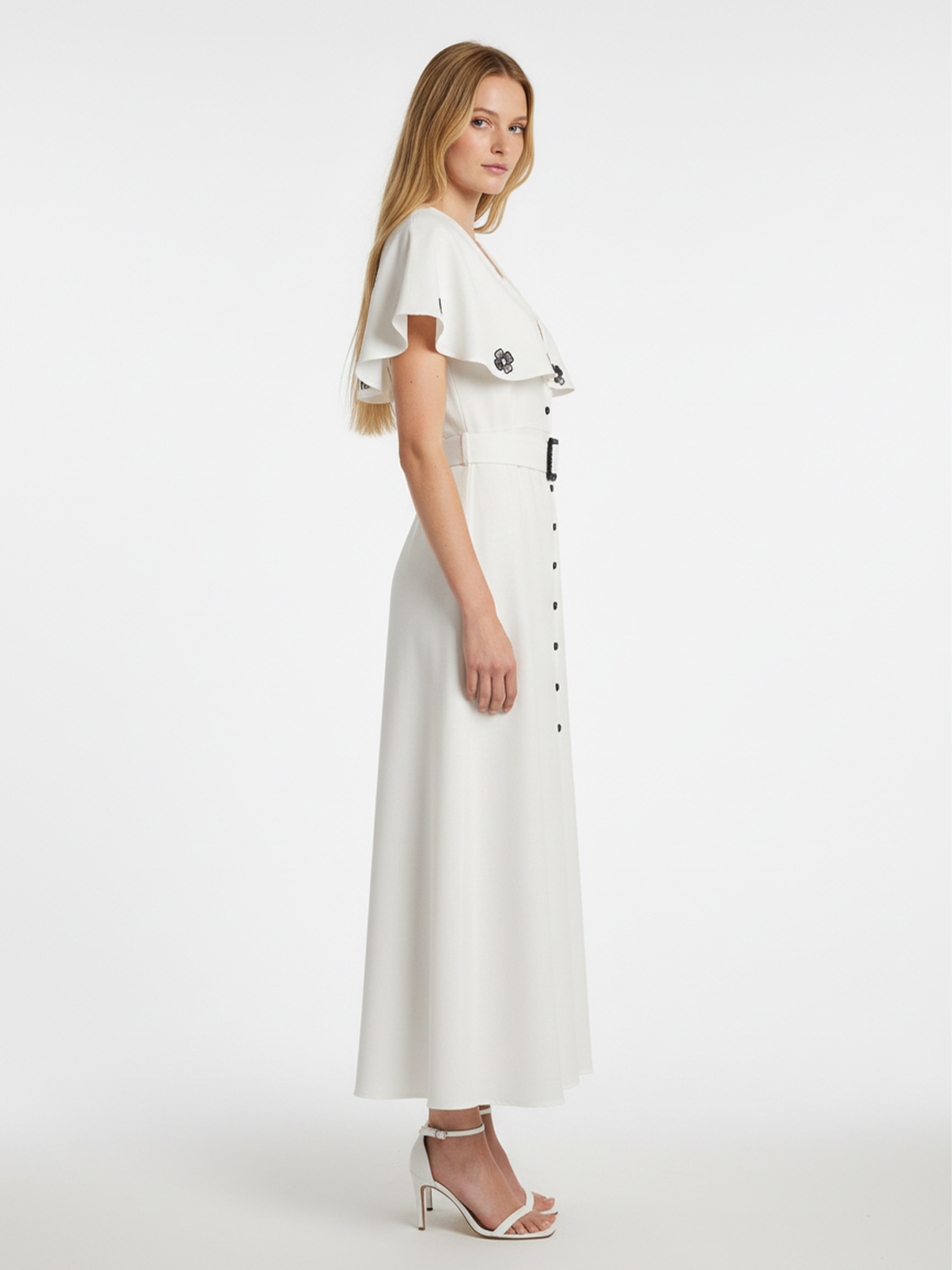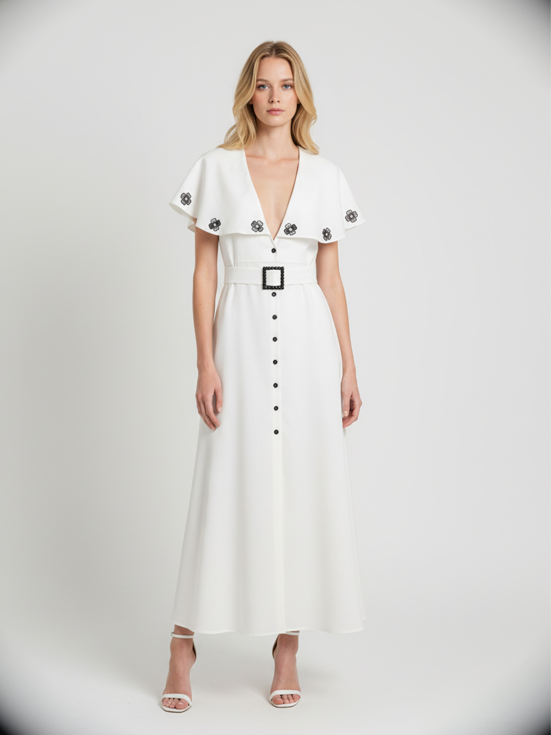 Beyaz Keten Karışımlı Regular Fit Elbise