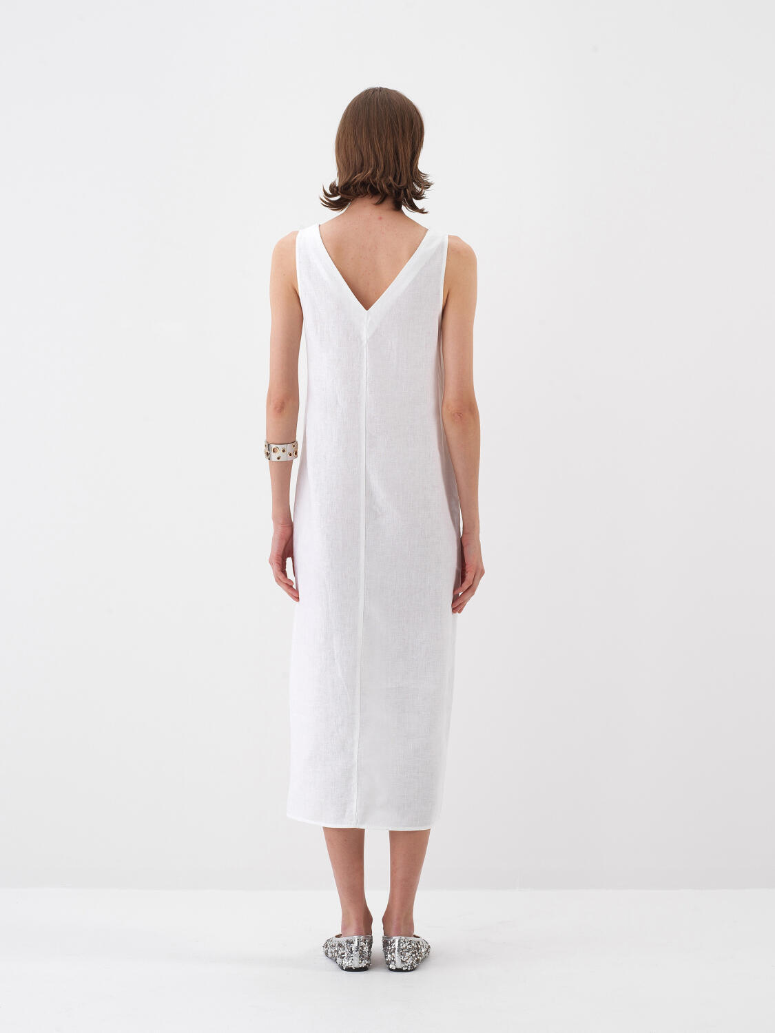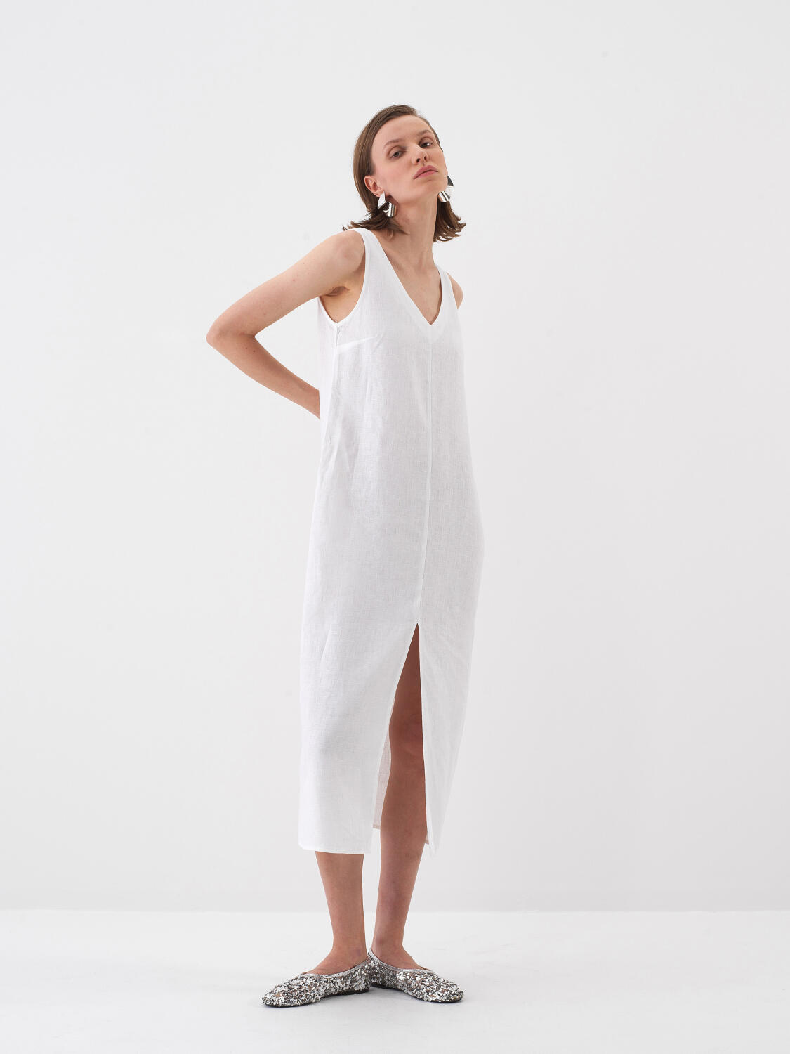 White Regular Fit Linen Dress
