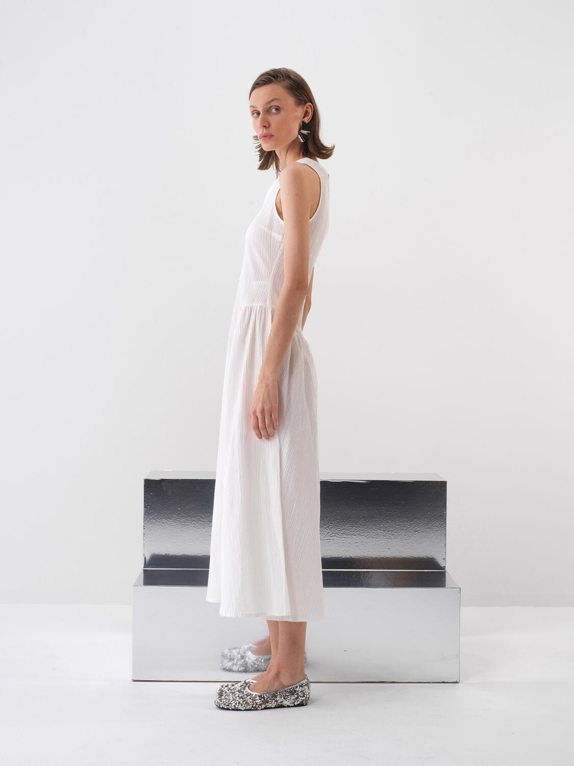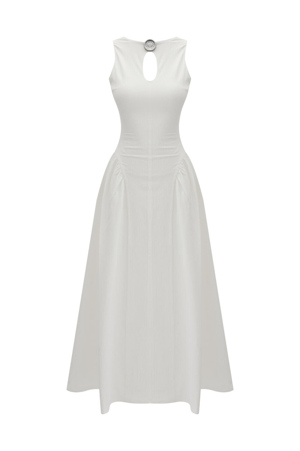 Beyaz Pamuk Dokulu Regular Fit Elbise