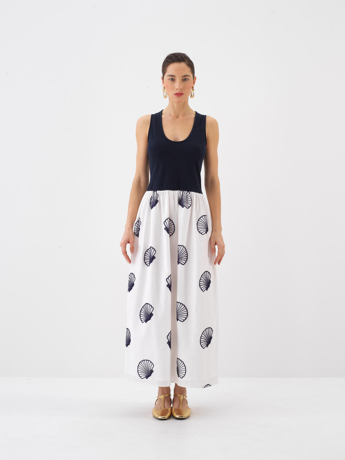 Lacivert Pamuk Dokulu Regular Fit Elbise
