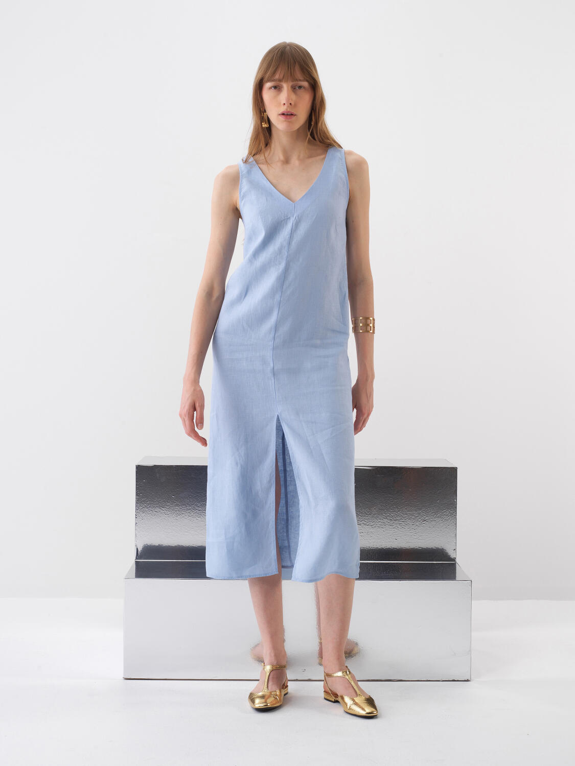 Mavi %100 Keten Regular Fit Elbise