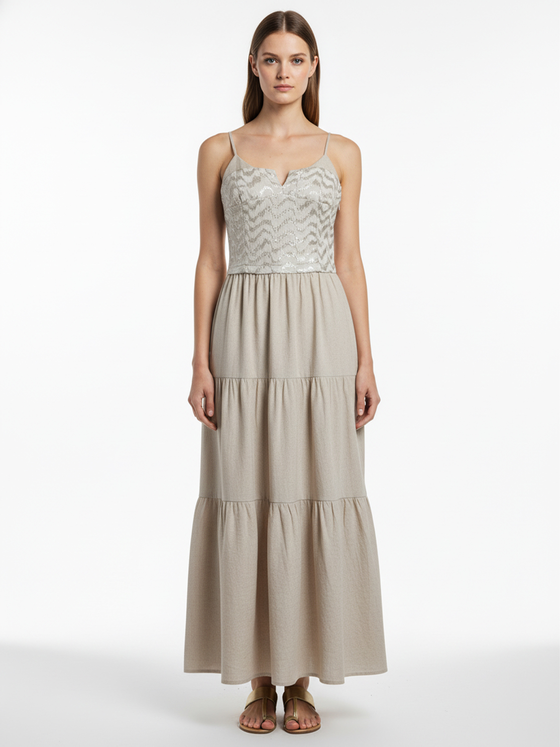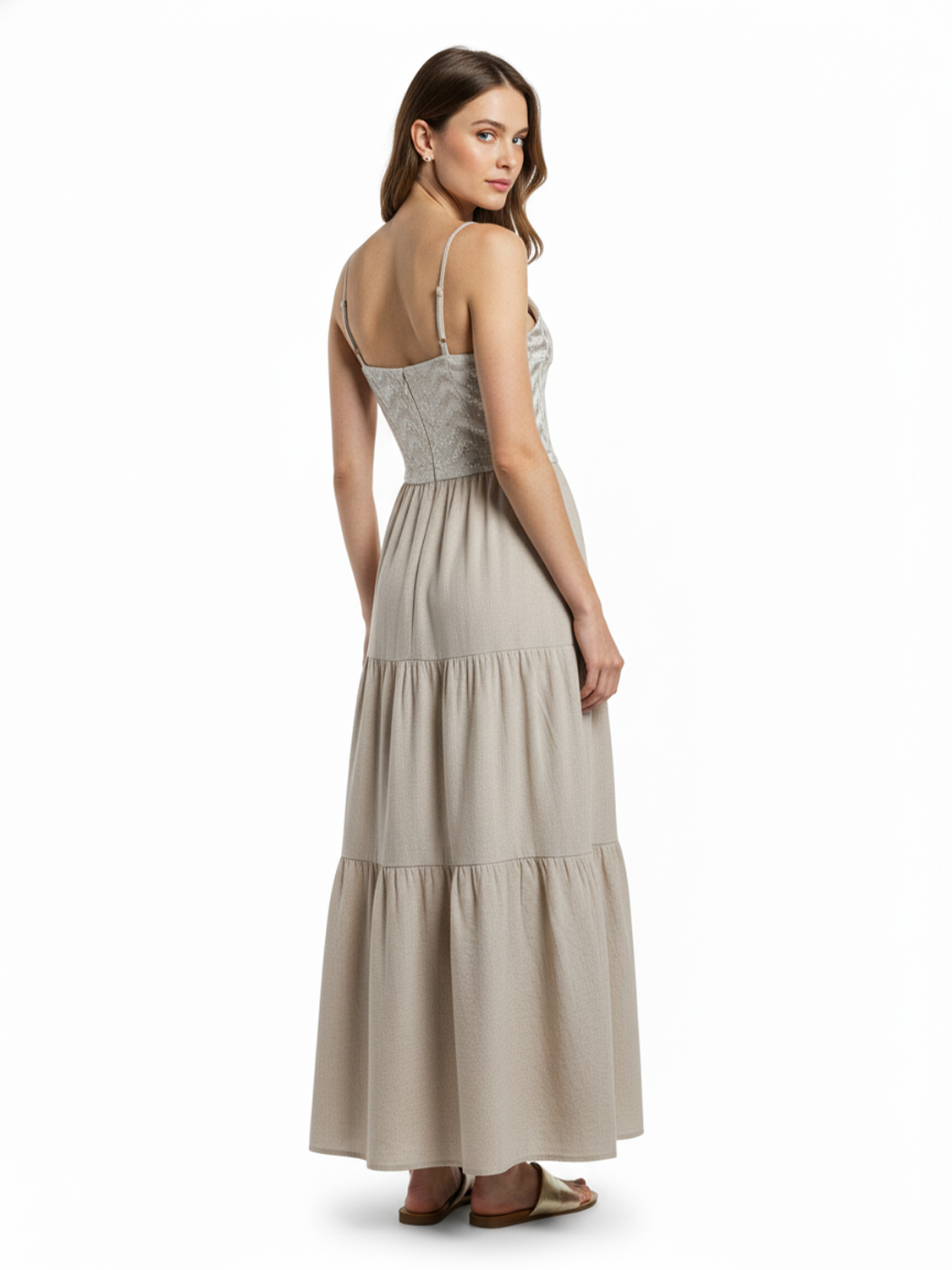 Naturel Keten Karışımlı Regular Fit Elbise