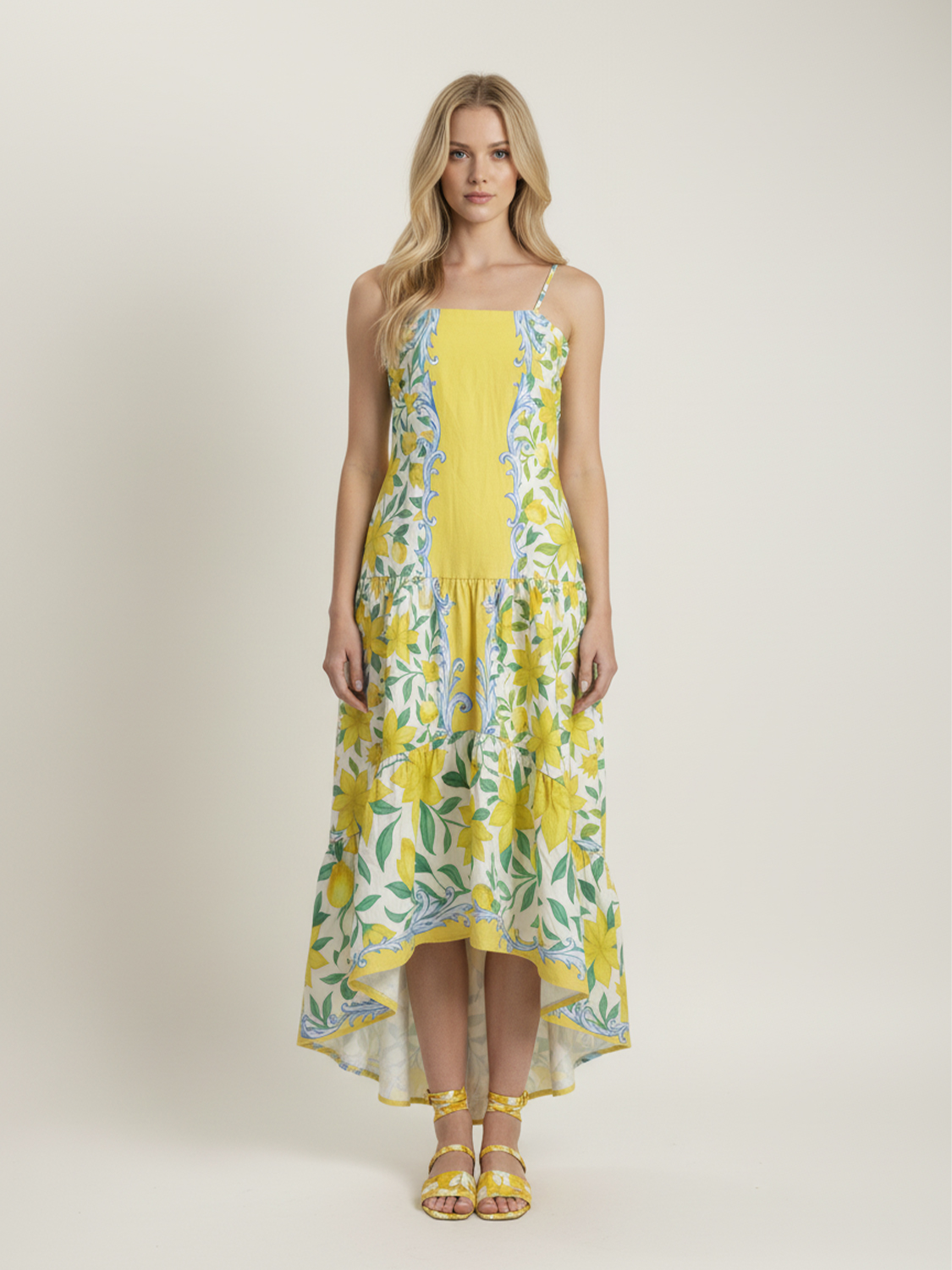 Sarı Pamuk Dokulu Regular Fit Elbise