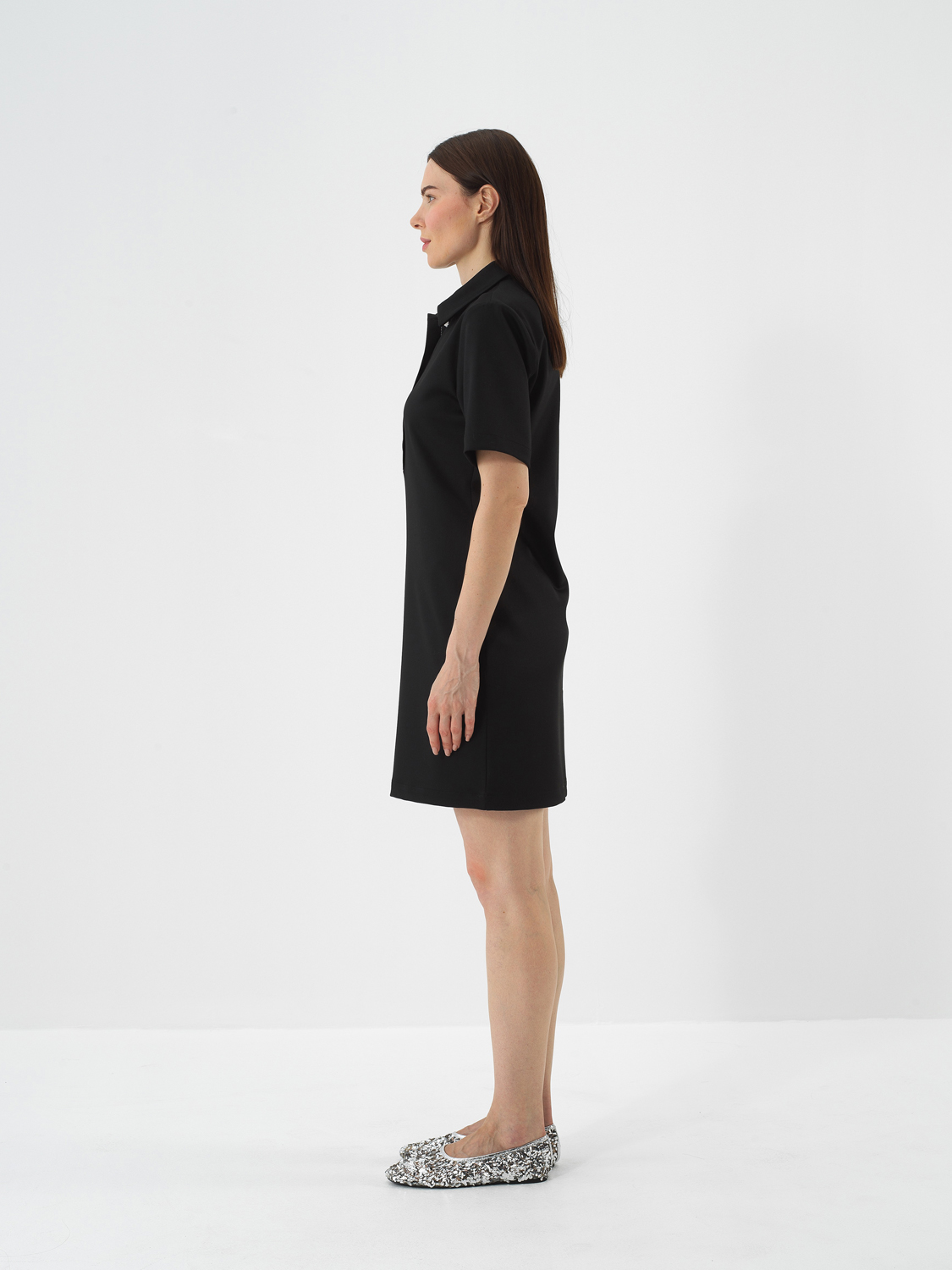 Siyah Pamuk Dokulu Regular Fit Elbise - Xint