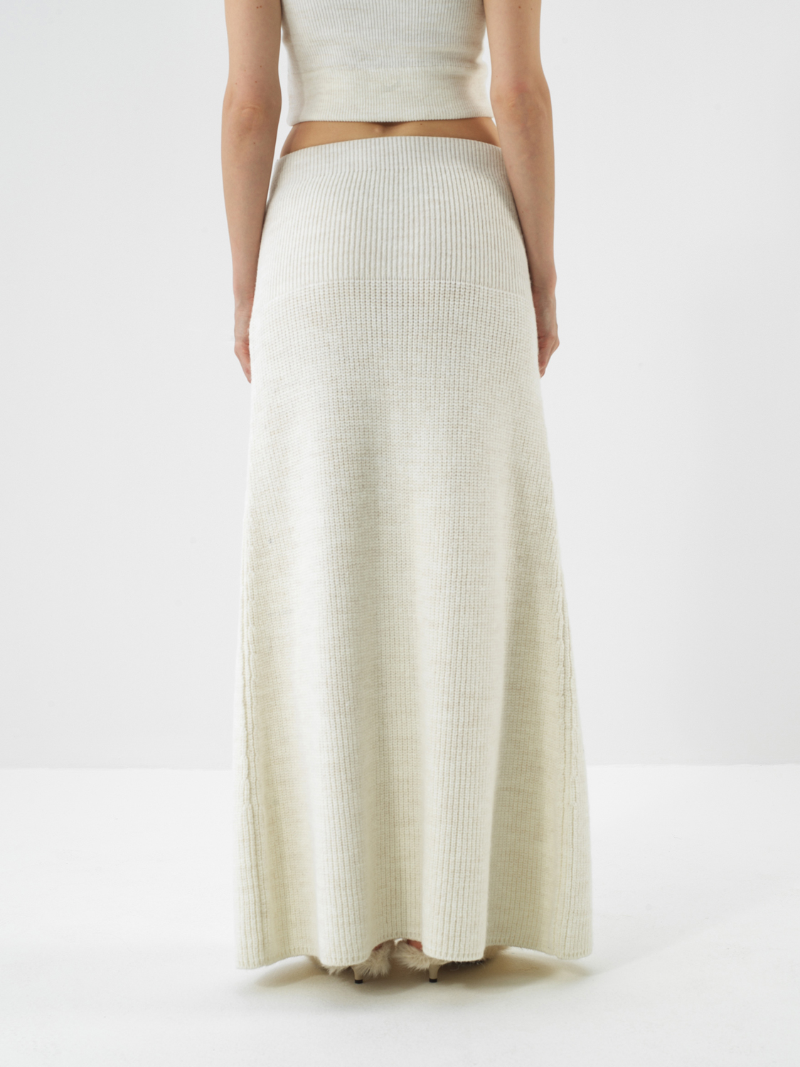 Ekru Doğal Yün Dokulu Oversize Etek