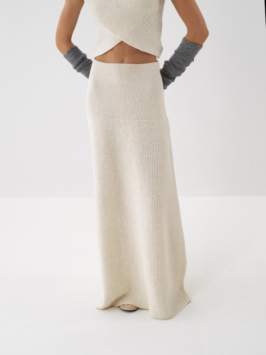 Ecru Natural Wool Textured Oversize Skirt - Xint