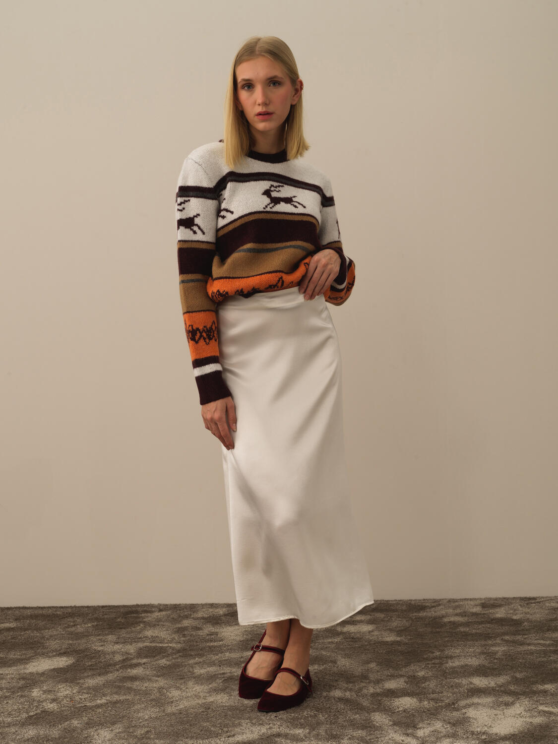 Ekru Doğal Yün Dokulu Regular Fit Etek - Xint