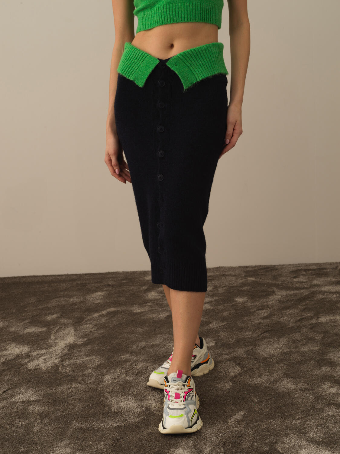 Lacivert Esnek Dokulu Oversize Etek - Xint